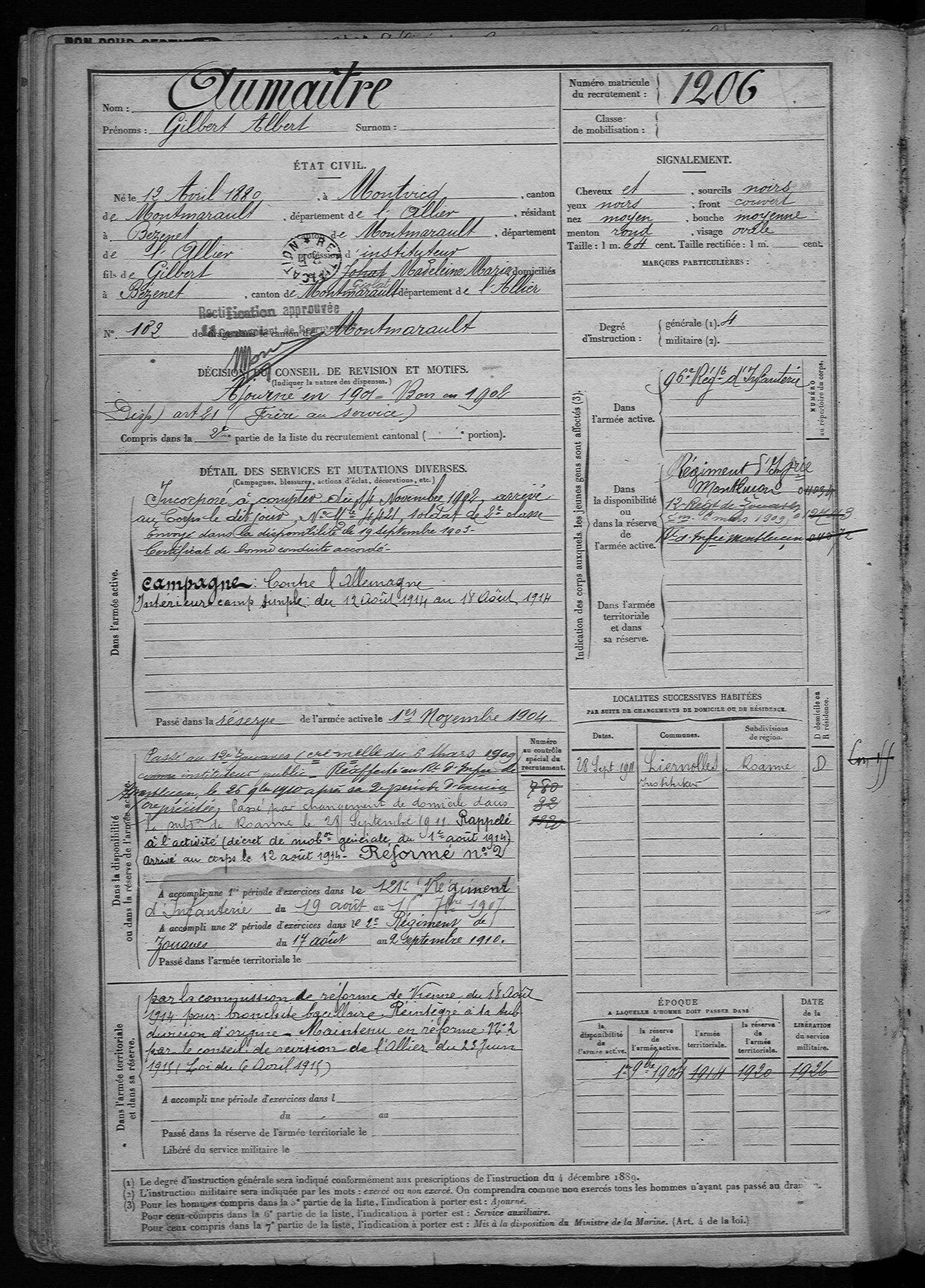Madeleine Aumaître n’a que 8 ans lorsque la guerre éclate en 1914. Fille d’un couple d’instituteurs, Marie et Gilbert, elle réside alors dans la commune de Liernolles, près du Donjon. En 1974, elle décide de mettre à plat ses souvenirs de la Première Guerre mondiale dans un cahier (voir ses mémoires ). Ayant vécu la guerre de « l’arrière », son témoignage nous donne une idée de la perception de la guerre par les enfants de l’époque.