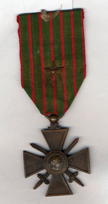 Il est décoré de la croix de guerre avec étoile de bronze (voir)