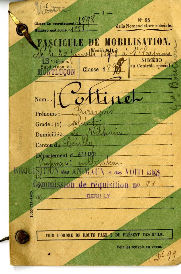 COLLINET François-Antoine, du Vilhain Le Vilhain Livret militaire de François-Antoine Collinet Livret militaire de François-Antoine Collinet (6.2 Mo) Registre matricule de François-Antoine Collinet Accès rapide Histoire du Bourbonnais 1914-1918 Sceaux et cachets #AllierJeudiArchives Nous contacter