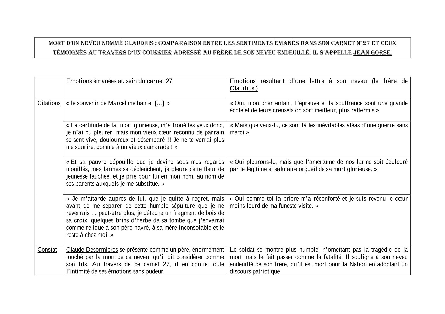 Même à la mort de son neveu Claudius (dit Marcel) tué à Mourmelon-le-Petit le 17 septembre 1915, il veut rester confiant. Ainsi il écrit à Jean, frère du disparu-« Oui, mon cher enfant, l’épreuve et la souffrance sont une grande école et de leurs creusets on sort meilleur, plus raffermis » ou » « Oui pleurons-le, mais que l’amertume de nos larme soit édulcoré par le légitime et salutaire orgueil de sa mort glorieuse. ». C’est dans ses carnets que sa peine profonde se révèle : « mon vieux cœur reconnu de parrain se sent vive, douloureux et désemparé !! Je ne te verrai plus me sourire, comme à un vieux camarade ! » (voir étude détaillée de la mort de Claudius)