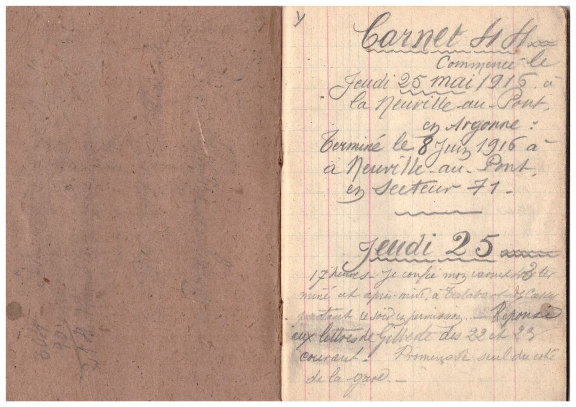 Il évoque la censure : « On nous a dit encore après la soupe, un avis du général défenseur expressément de ne rien mettre dans les correspondances qui puisse en quoi que ce soit renseigner l’ennemi ou alarmer l’opinion publique. » (carnet 23, mercredi 15 septembre 1915) « Par ordre ministériel du 27 juin, il est interdit de porter aucune appréciation désobligeante, ni aucun sarcasme sur certaines unités, leurs numéros et les pays d’origine des hommes qui les composent, afin de maintenir la censure et l’Union sacrée entre différents corps de troupe. » (carnet 25, samedi 27 septembre 1915).
