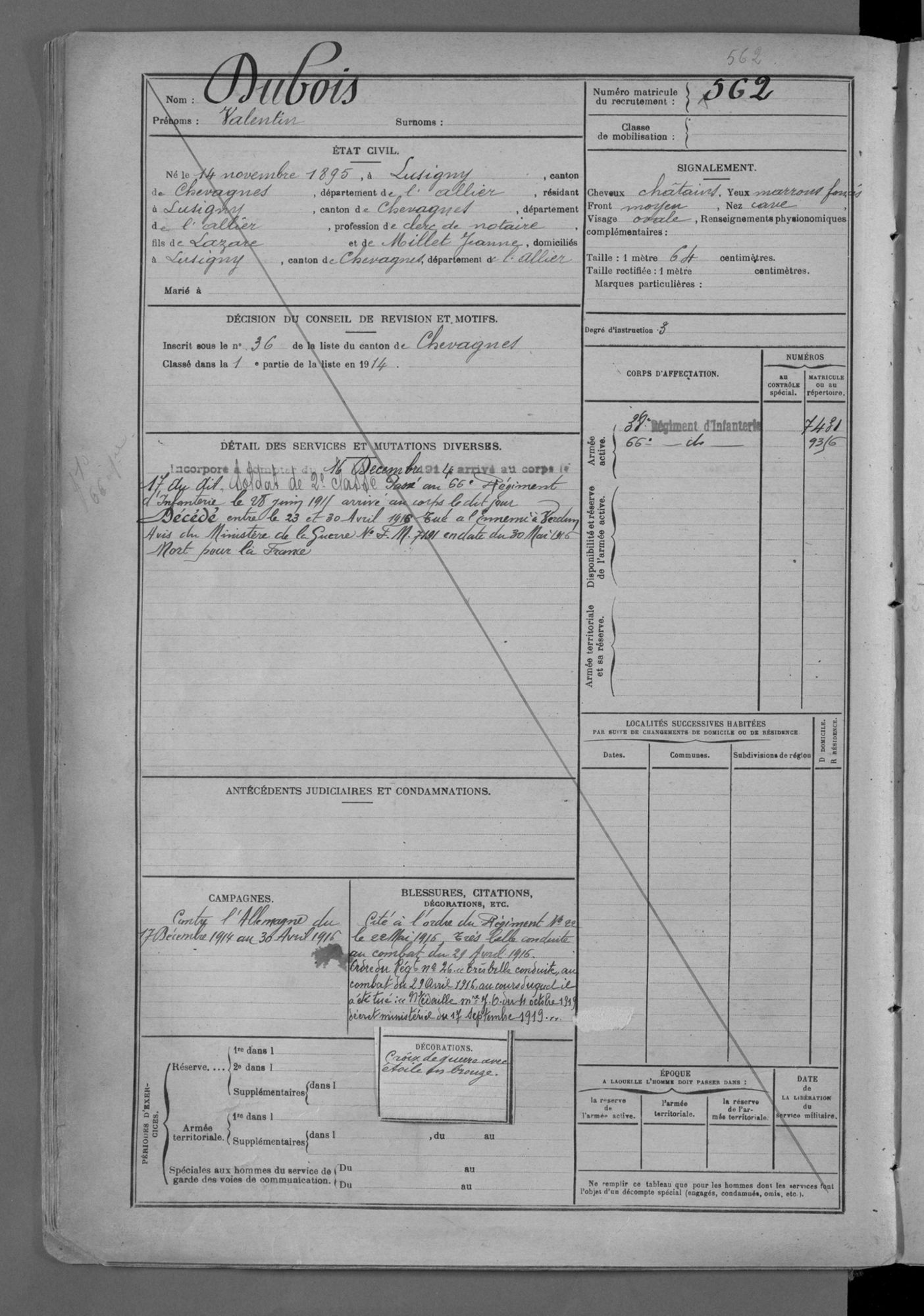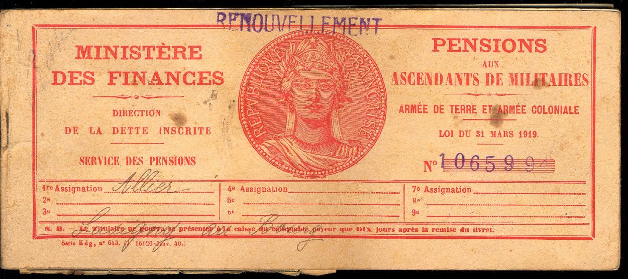 Jeanne Dubois, la mère de Valentin et Mathieu toucha une pension en tant qu’ascendant de militaire (voir documents relatifs à la pension d’ascendant de militaire)