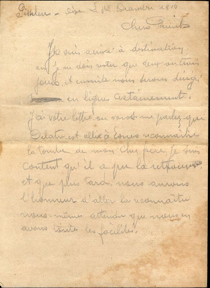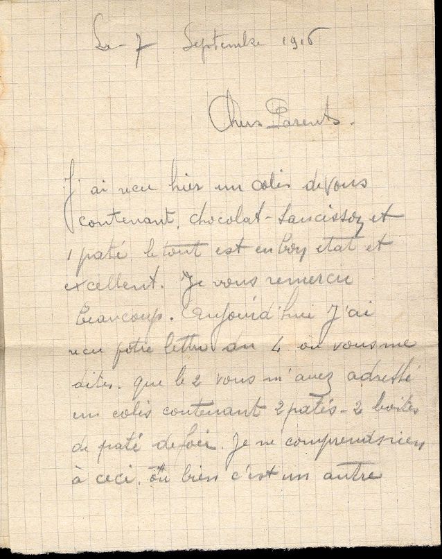 Cartes et lettres envoyées par Mathieu Dubois à ses parents en 1916