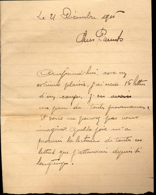 Cartes et lettres envoyées par Mathieu Dubois à ses parents en 1918