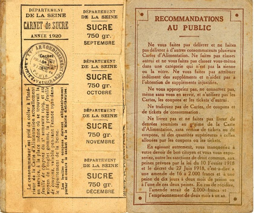 En 1919, la guerre pourtant finie, les restrictions durent et Joseph Fontbonnat comme tant de Français se voit délivrer des bons d'alimentation pour le pain et le sucre par exemple.