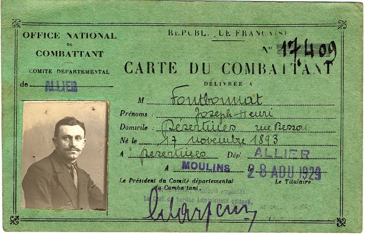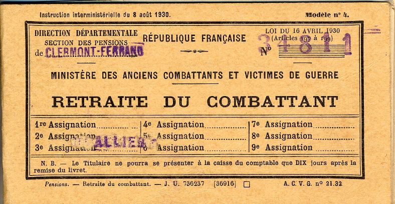 Après la guerre, son statut d’ancien combattant (voir ses cartes) lui vaut une pension.