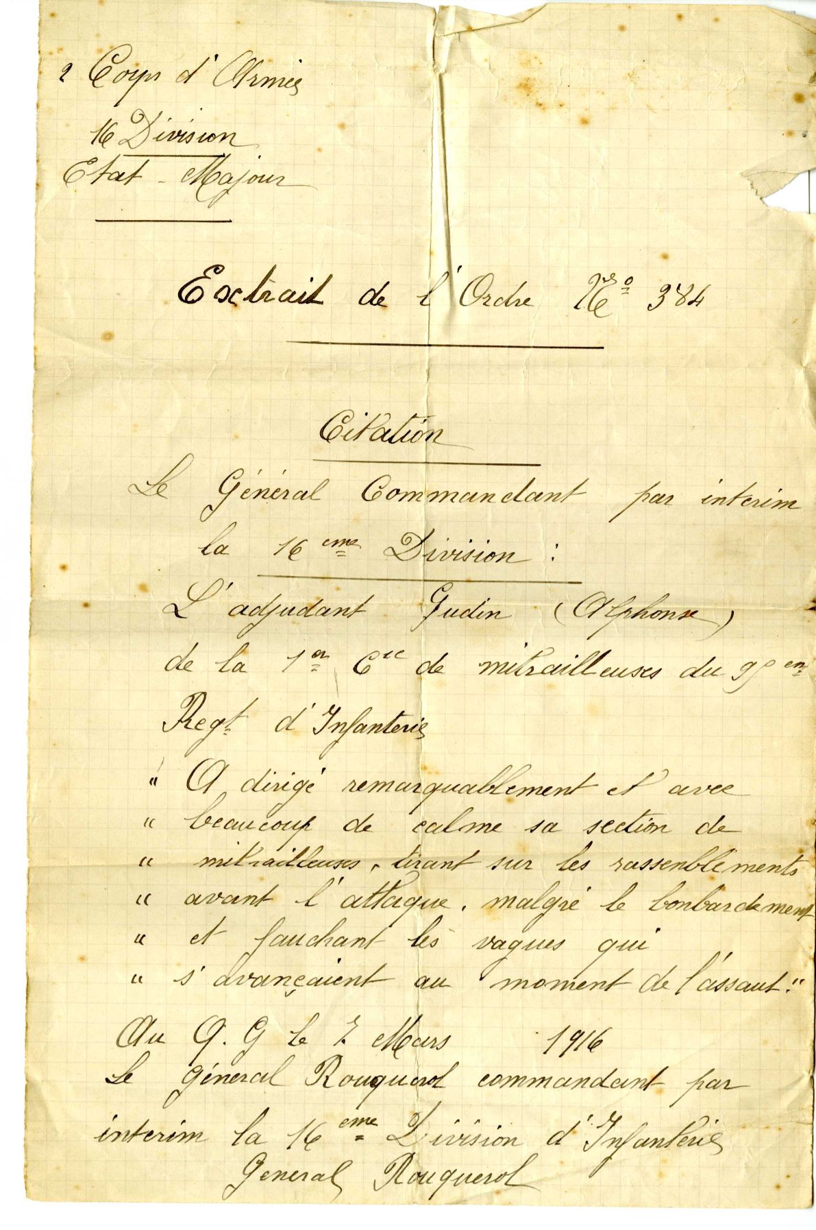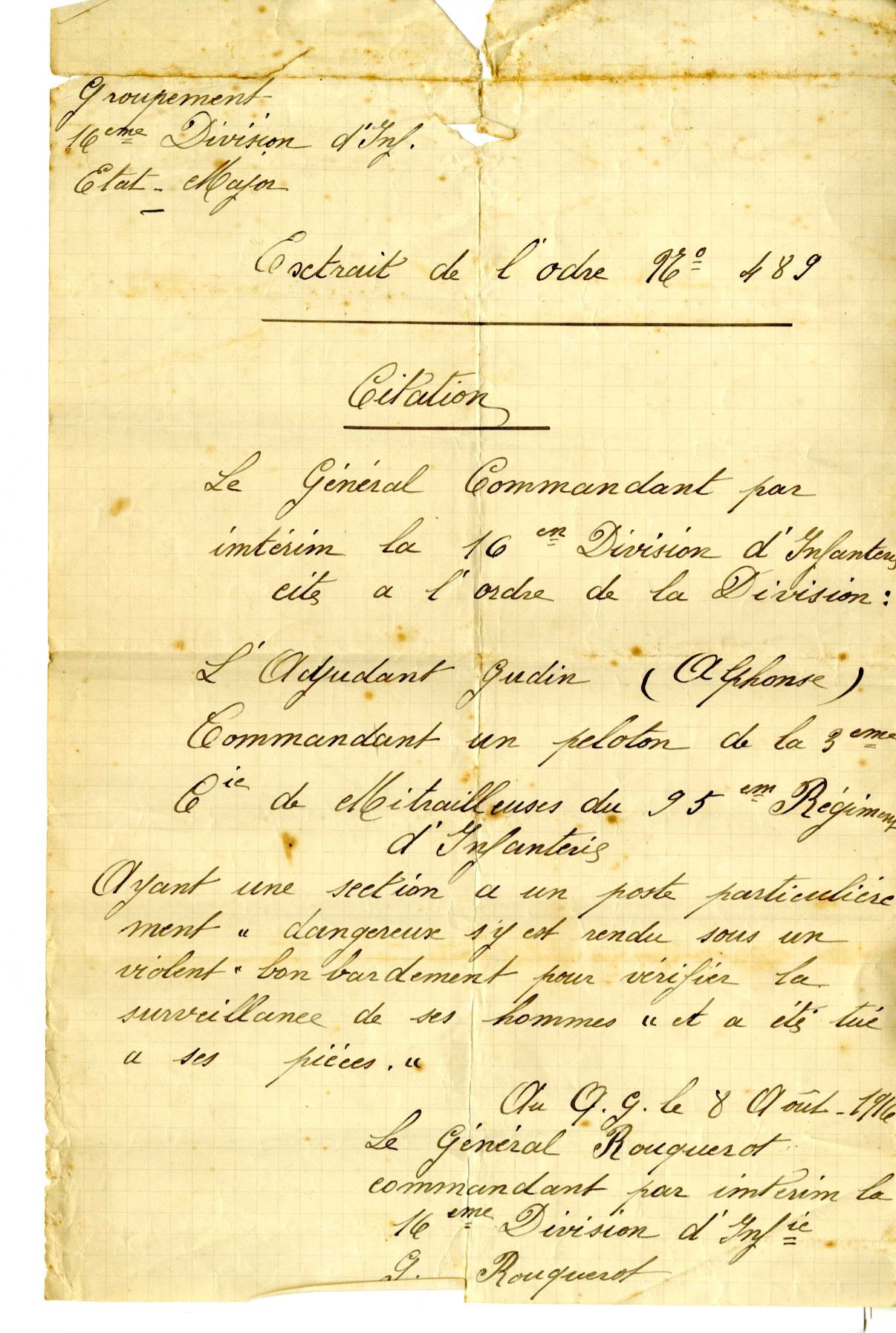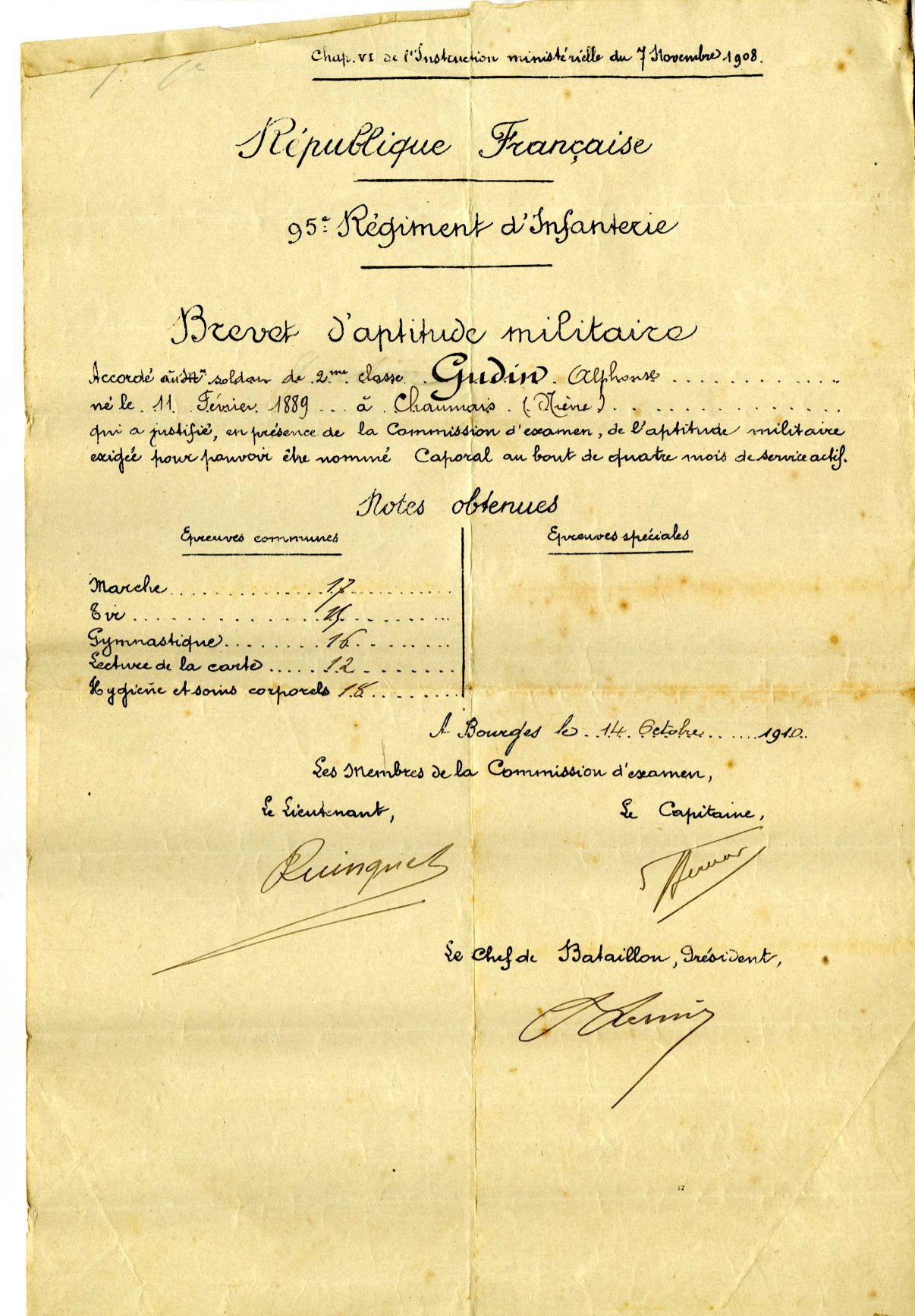 Agé de 25 ans lors de l’entrée en guerre, Alphonse Gudin (voir photos) cordonnier originaire de Chaumard dans la Nièvre, est incorporé dans l’infanterie.