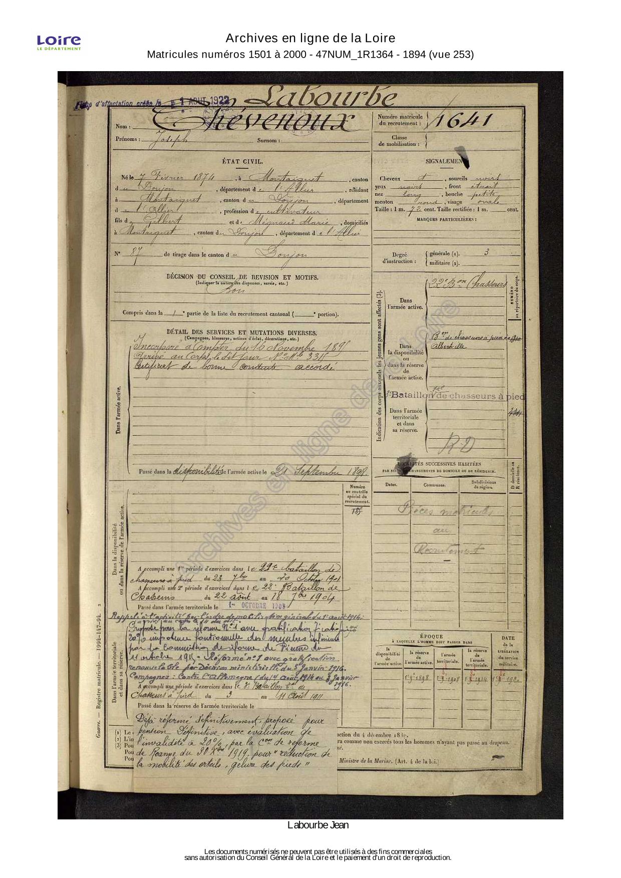LABOURBE Joseph, de Montaiguët-en-Forez