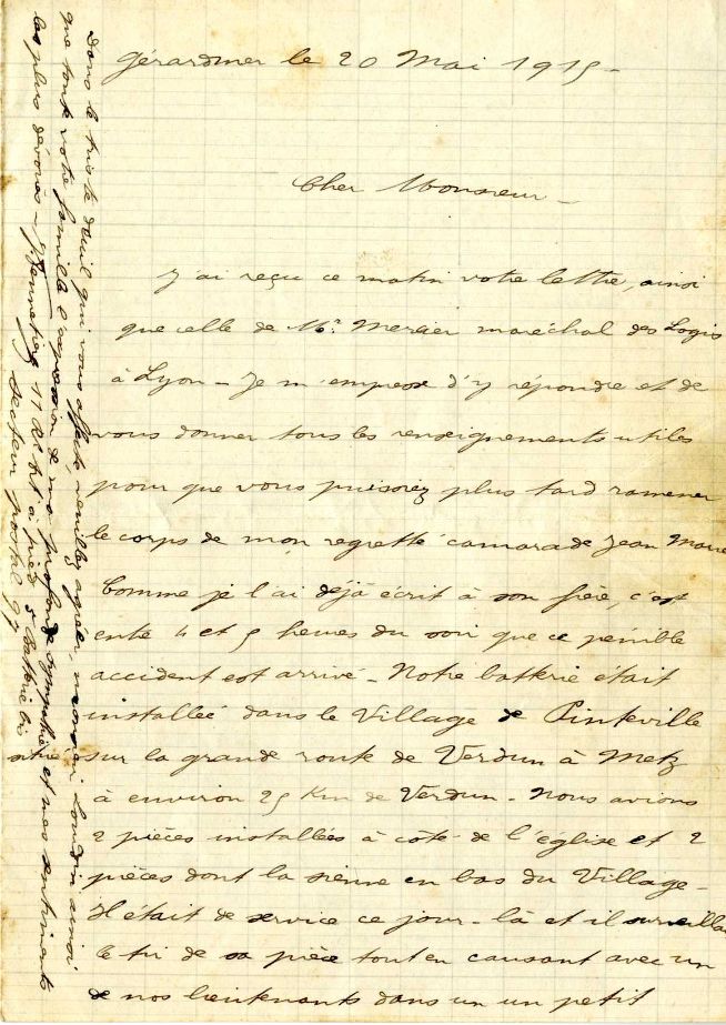 Voir ci-dessous la lettre du 20 mai 1915 relatant les circonstances du décès). 👇