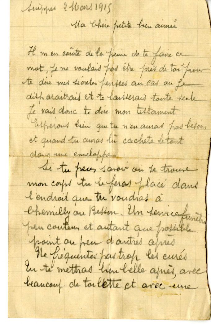 Conscient des risques qu’il encourt, il écrit son testament le 2 mars 1915👇