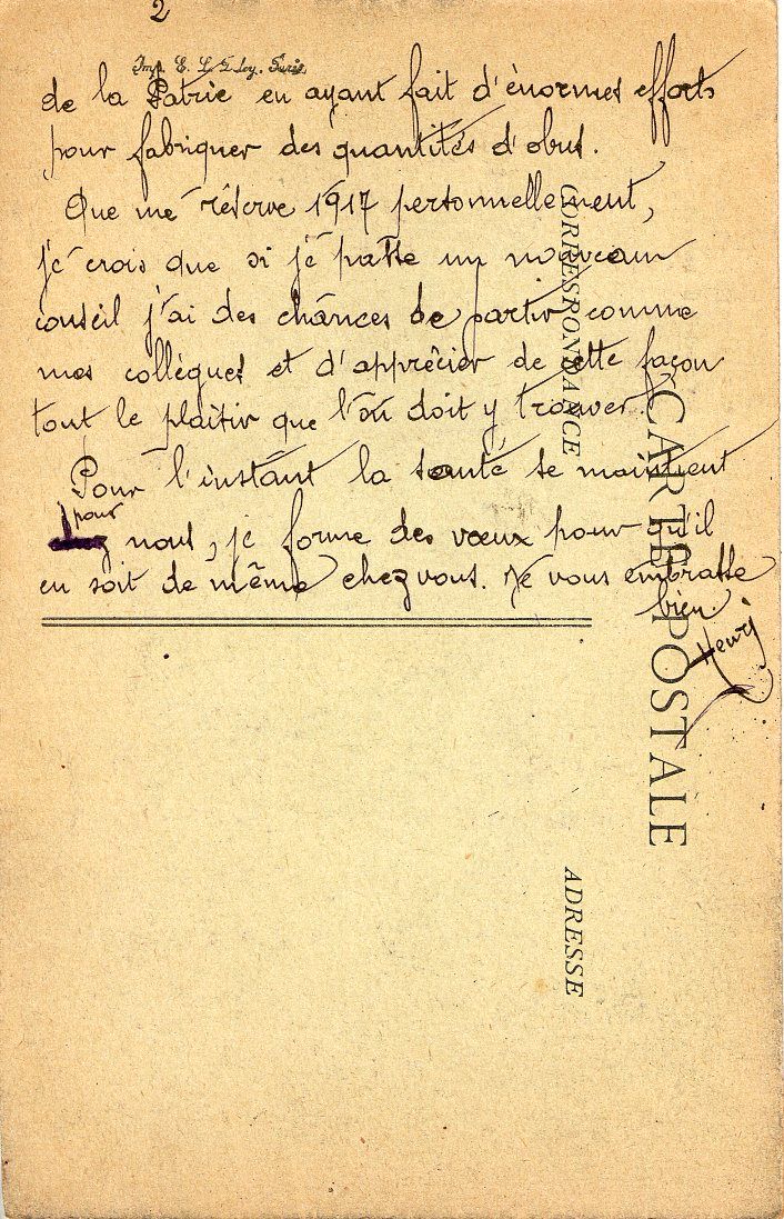 Carte signée Henry qui attend peut être la décision du conseil de révision qui va l'envoyer au front pour l'année 1917, 29/12/1916.Carte signée Henry qui attend peut être la décision du conseil de révision qui va l'envoyer au front pour l'année 1917, 29/12/1916.