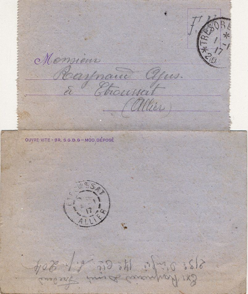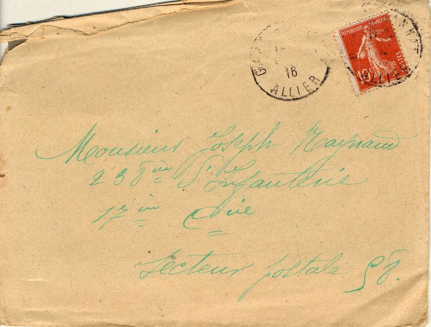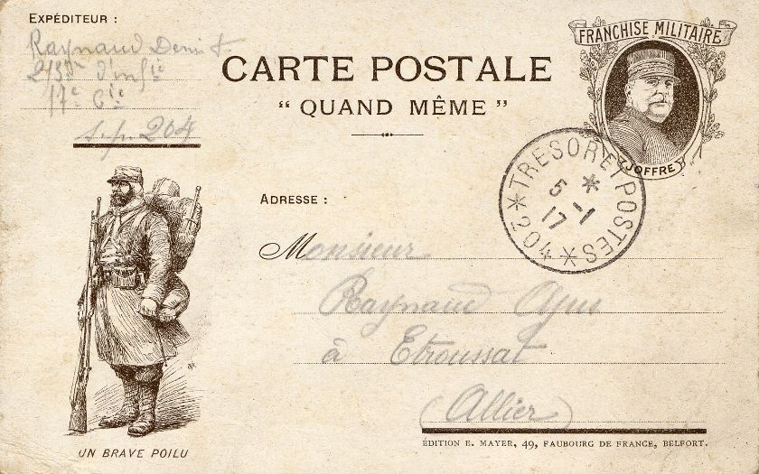 Joseph, Frédéric et Adrien Raynaud sont les fils de Marie-Thérèse Ajus et Louis Raynaud, cultivateurs à Ussel, Fourilles et Etroussat. Joseph est l'aîné des 3 garçons. Né en 1879, il a 35 ans au début du conflit, il est cultivateur à Fleuriel (voir registre matricule de Joseph Raynaud ). Ses frères sont plus jeunes. Frédéric, né en 1886 a 28 ans (voir le registre matricule de Frédéric Raynaud ), il est cultivateur à Fourilles. Adrien, né en 1889, a 25 ans (voir le registre matricule d'Adrien Raynaud ), il est cultivateur avec ses parents à Etroussat.