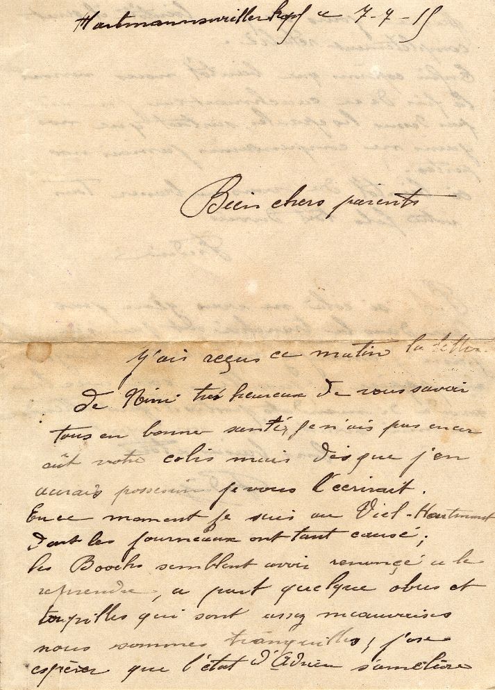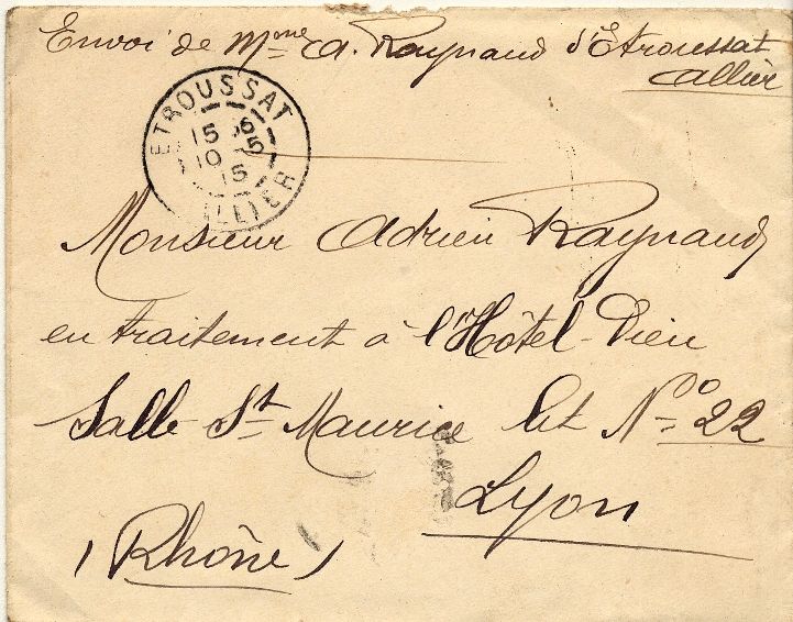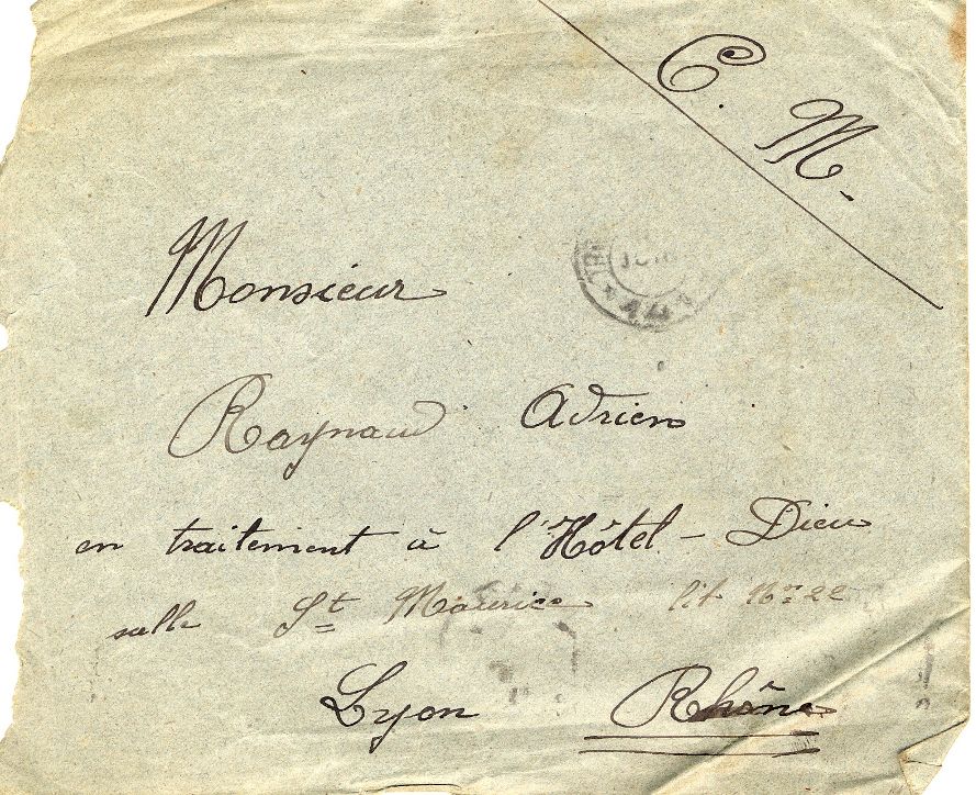 Adrien a été blessé par un éclat d'obus à la cuisse gauche le 15 avril 1915. Il succombe à cette blessure quelques mois plus tard, entouré des siens chez lui. Les lettres envoyées par sa femme Maria ne peuvent être lues sans émotion.