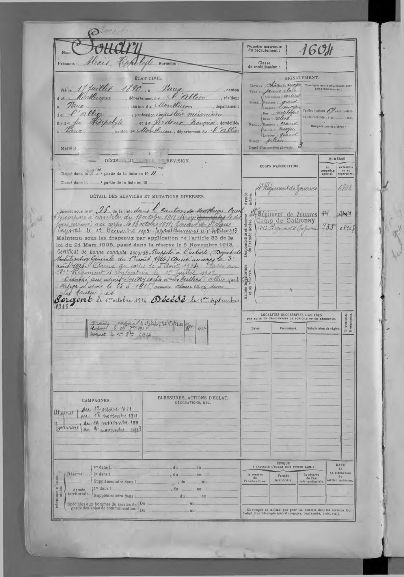 Nous remercions, la petite-nièce d'Alexis Soudry, Madame Martine Soudry-Pontisso pour les archives et renseignements biographiques ici présentés.