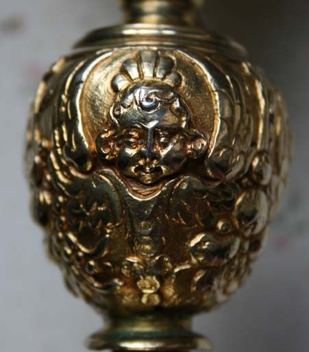 « des Aubry...Quel foudre poussé par le souffle enflammé pourrait ébranler ces murs fortifiés de retranchements impénétrables ? Qui franchirait ces remparts ? Qui pourrait tarir ces fossés profonds ? Là, deux tours avancent leur vaste contour ; entre elles à juste distance s’élève un pont, dont les solives, qui se prolongent d’un bord à l’autre, sont liées de chaînes de fer, et par lequel de hautes portes disposent du passage. De là la basse cour offre un vaste espace que des arbres fruitiers plantés en ordre couvrent de leurs rameaux épars, et forment pour les passants un agréable ombrage... Au dessus de la porte à double battant, les armes distinctives de l’antique maison des Aubry s’offrent aux yeux. L’on y voit sur un champ d’azur trois têtes de dauphin que sépare un chevron d’or. S’il m’est permis de révéler ses secrets, la nature a donné aux Aubry le génie des dauphins. En effet, quelle inclination bienfaisante, quel zèle, quelle infatigable activité ! Il semble que leur corps soit étranger au sommeil et leur repos semblable à celui des dauphins. Mais pourquoi ces quatre tours qui semblent porter jusqu’au ciel leurs têtes orgueilleuses, ne frapperaient-elles pas plus longtemps mes regards ? Ainsi que la façade de la maison qui n’offre à la première entrée qu’un frontispice étroit derrière lequel s’élève une tour carrée, mais qui prolongeant ses côtés, forme d’immenses appartements. Parlerais-je de ce toit élevé, et de ces créneaux dorés ? Mais l’intérieur de la maison et les vastes salles décorées de tableaux peints sur les murs rappellent les hauts faits des ancêtres et excitent leurs descendants à les suivre dans le chemin de la gloire. »