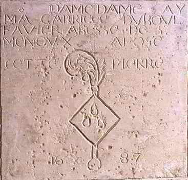 Marie-Gabrielle du Boulay-Favier fut abbesse de Saint-Menoux de 1678 à 1695, date de sa mort. Rarement intactes car bûchées à la Révolution, ses armes se retrouvent un peu partout sur les nombreux ouvrages d’art qu’elle commanda. Elles permettent de reconstituer de manière inattendue les ambitieux travaux de l’abbesse.
