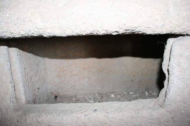 (2) Littéralement, « petite fenêtre ». Petite baie percée dans un sarcophage, au moyen de laquelle on faisait toucher à la tombe d’un saint les linges appelés brandea, que l'on récupérait ensuite sanctifiés par ce contact sacré, pour être distribués comme de précieuses reliques. On pouvait aussi y faire couler des huiles, que l’on récupérait par un petit trou circulaire situé à l’opposé de la fenestella, et que l’on conservait dans des fioles qui prenaient à leur tour le statut sacré de reliques. Cette ouverture, qui était fermée le reste du temps, comprenait généralement une feuillure dans laquelle coulissait verticalement une plaque de fermeture (sarcophage présumé de Blaise à Saint-Menoux). Au tombeau de saint Lazare d’Autun, elle était en porphyre rouge. L’ouverture percée dans le sarcophage de Menou, sans doute au XIIe siècle lorsqu’il fut vidé de son contenu, est quant à elle légèrement différente : elle restait toujours ouverte, et les pèlerins y passaient la tête en un rite de passage destiné à les guérir. La fenestella pouvait aussi être une baie percée dans un caveau funéraire (fenestella confessionis) contenant un corps saint et permettant aux fidèles de contempler le tombeau, mais sans pouvoir entrer dans le caveau, contrairement à la crypte