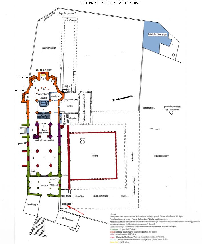 Elle comprenait un appartement bas et une chambre haute. Située à la suite du chauffoir des dames, l’hôtellerie se trouvait à l’entrée de l’église, côté sud. Il pourrait éventuellement s’agir du logis en face de la charbonnière.