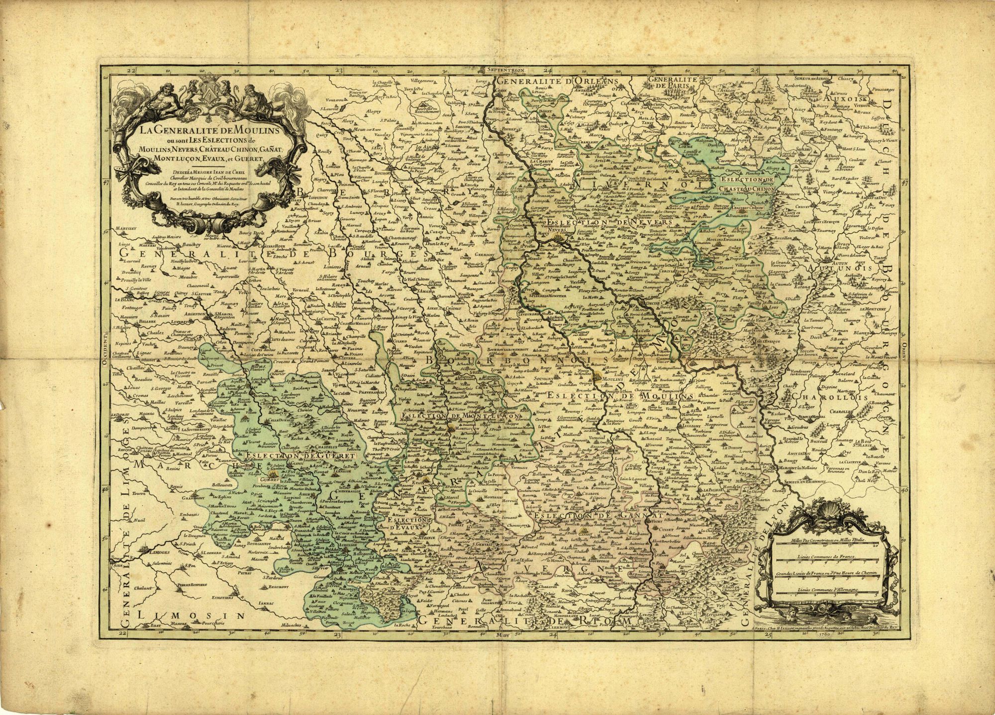 Sitôt les Etats de Bourbon réunis à la couronne, la royauté y implante son administration, ainsi qu’elle a toujours fait au lendemain de la réunion d’un grand fief. Seule la partie centrale des anciens Etats, en l’occurrence le Bourbonnais, retient désormais notre attention. C’est donc tout d’abord le gouvernement qui est créé en 1532. Vient ensuite, en 1551, le présidial de Moulins. Plus tard, en 1587, on constitue la généralité de Moulins qui englobe le Bourbonnais, une partie du Nivernais et une bonne portion de la Marche. Au XVIIe siècle, enfin, les rois vont créer l’intendance de Moulins, avec la généralité pour ressort.