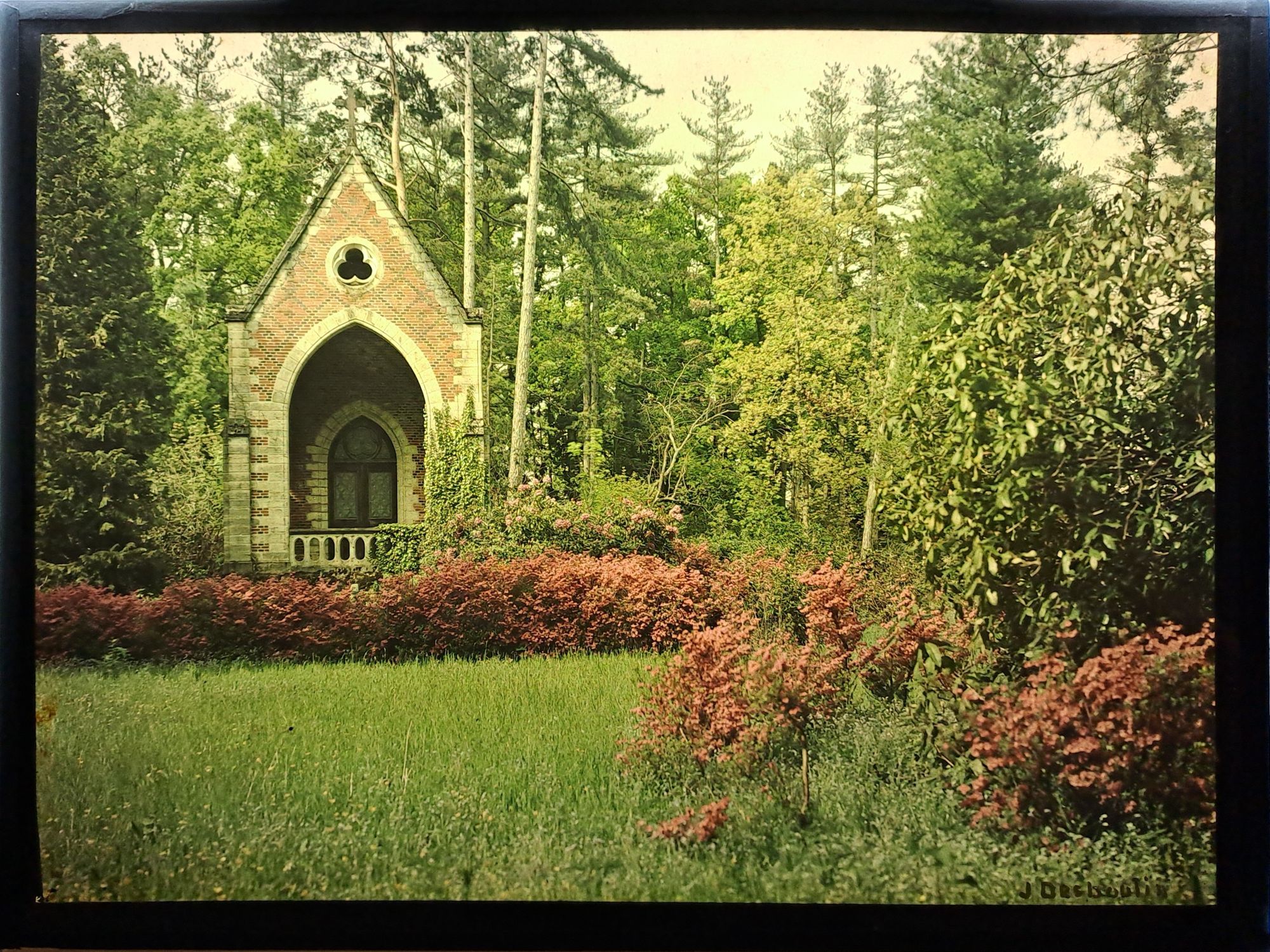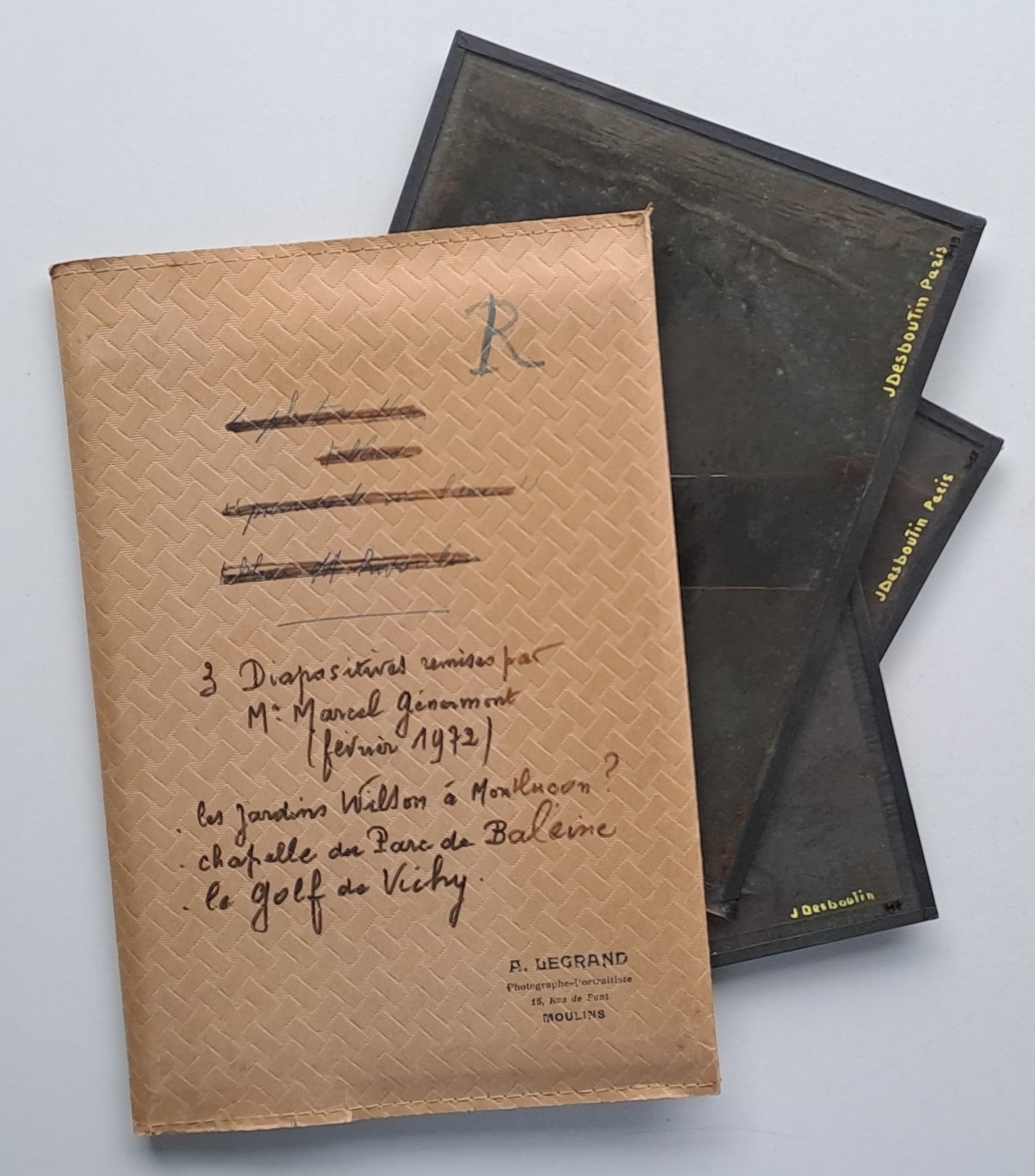 Elle porte la mention manuscrite au feutre : 3 Diapositives remises par Mr Marcel Génermont (février 1972). Les jardins Wilson à Montluçon ? Chapelle du Parc de Baleine [sic]. Le golf de Vichy.
