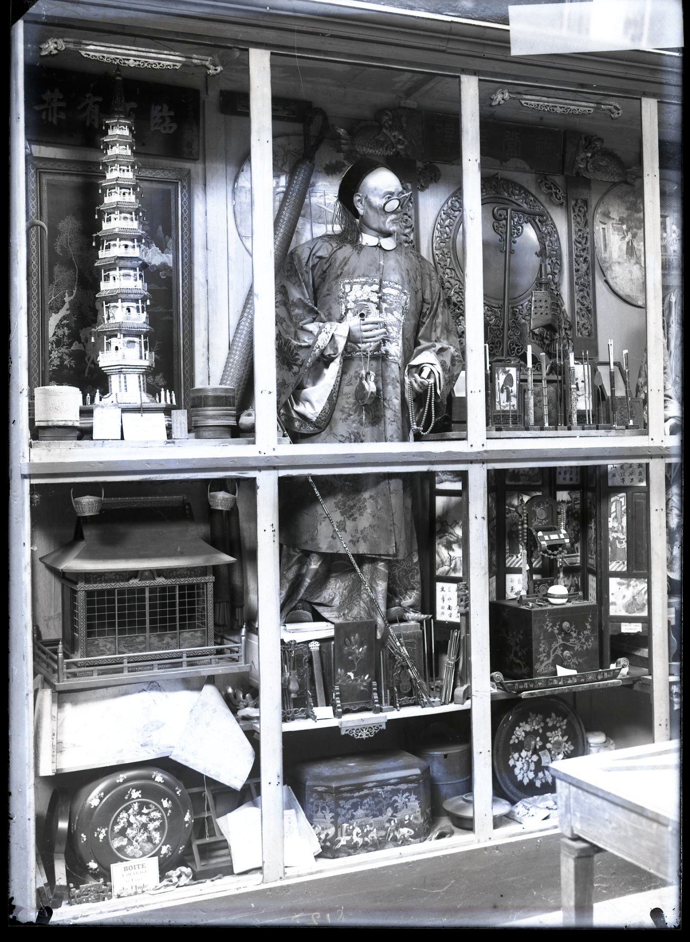 Le contenu de ses boîtes montre une collection impressionnante d’objets dans le style des cabinets de curiosité à la mode en cette fin du 19ème siècle : des minéraux, des fossiles, des antiquités égyptiennes, de nombreux objets venant d’Extrême-Orient, ainsi qu’un considérable arsenal militaire (dont une curieuse armure à clous difficile à identifier…).