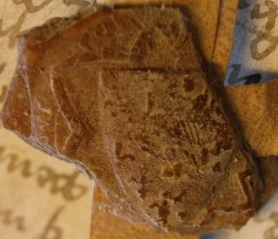 Description matérielle : Sceau rond de cire naturelle.