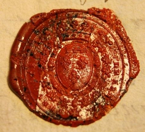 Description matérielle : Sceau ovale de cire rouge.