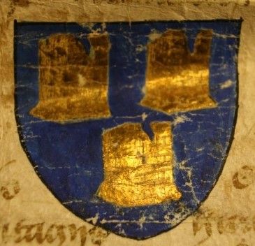 Notes : Le roi a pris soin, pour donner un éclat tout particulier à la faveur accordée, de choisir et blasonner lui-même les armes des deux nouveaux chevaliers : « ...arma sibi conferimus que nosmet designavimus blasonavimus videlicet ipsi Johanni Becquet de campo asurii ad tres turres auri fractas hoc modo, et ipsi Stephano Guillier de campo auri ad tres turres asurii fractas hoc modo. »