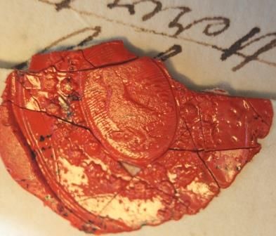 Description matérielle : Cachet ovale de cire rouge brillante.