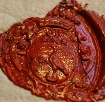 Description matérielle : Cachet ovale de cire rouge brillante.