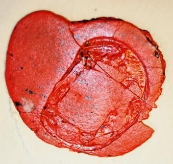 Description matérielle : Cachet ovale de cire rouge brillante.