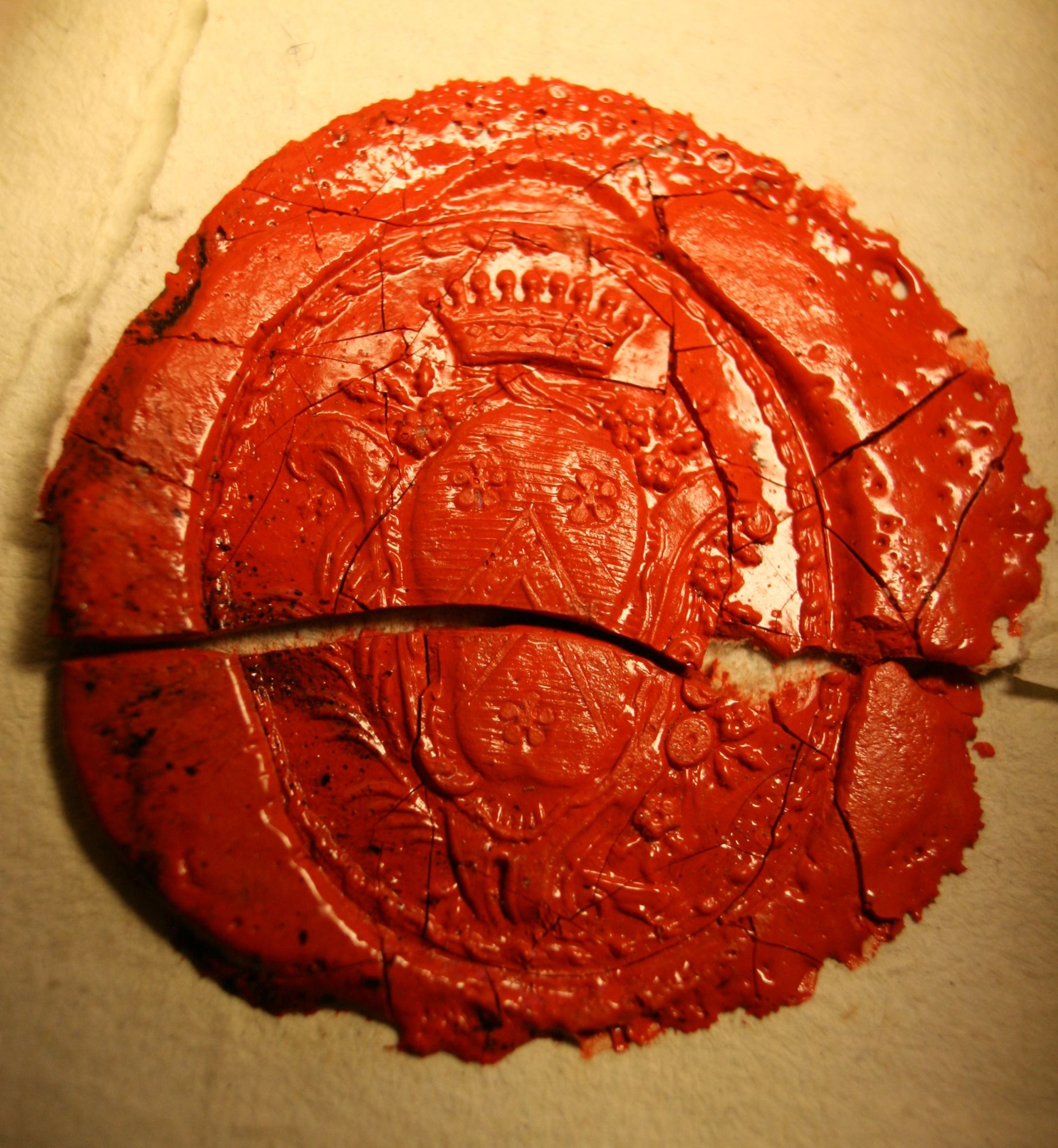 Description : Armoiries : d'azur au chevron d'or accompagné de trois roses d'argent.