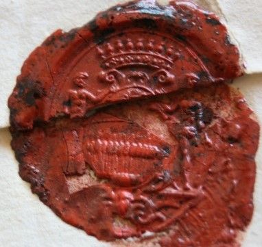 Description : Armoiries : d'argent à la rizière de sinople ; au chef d'azur chargé d'un soleil d'or adextré d'une épice d'argent garnie d'or. Ornements : blason couronné et tenu par des hommes sauvages.