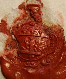 Description matérielle : Cachet ovale de cire rouge.