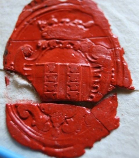 Description matérielle : Cachet ovale de cire rouge.