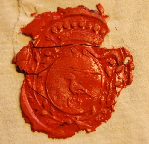 Description : Armoiries : d’argent à un perroquet de sinople posé sur un mont de trois coupeaux du même, lequel est chargé d’un croissant d'argent ; au chef de gueules, chargé de deux étoiles d’or. Ornements : couronne, palmes.