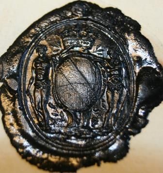 Description matérielle : Cachet ovale de cire noire brillante.