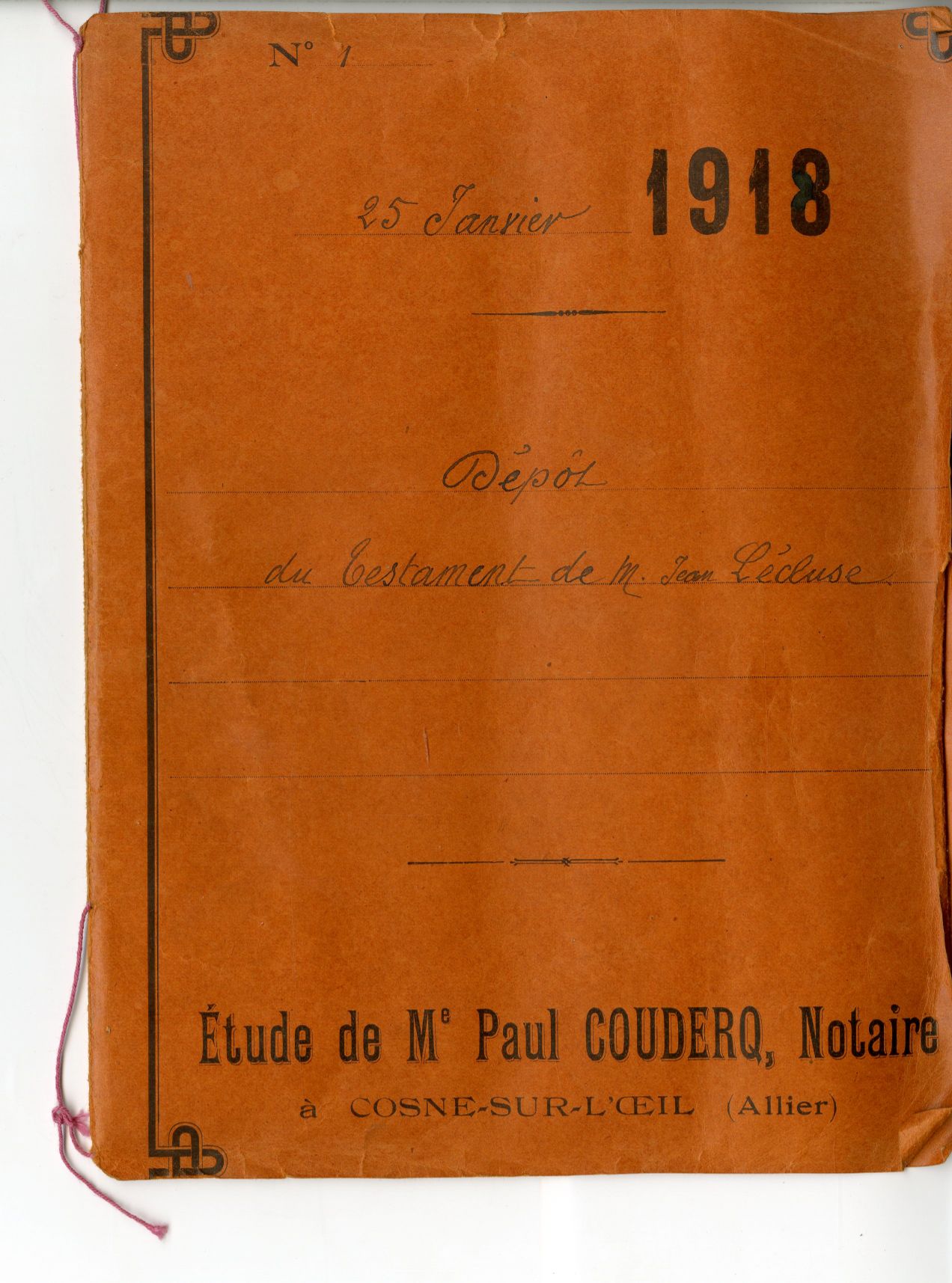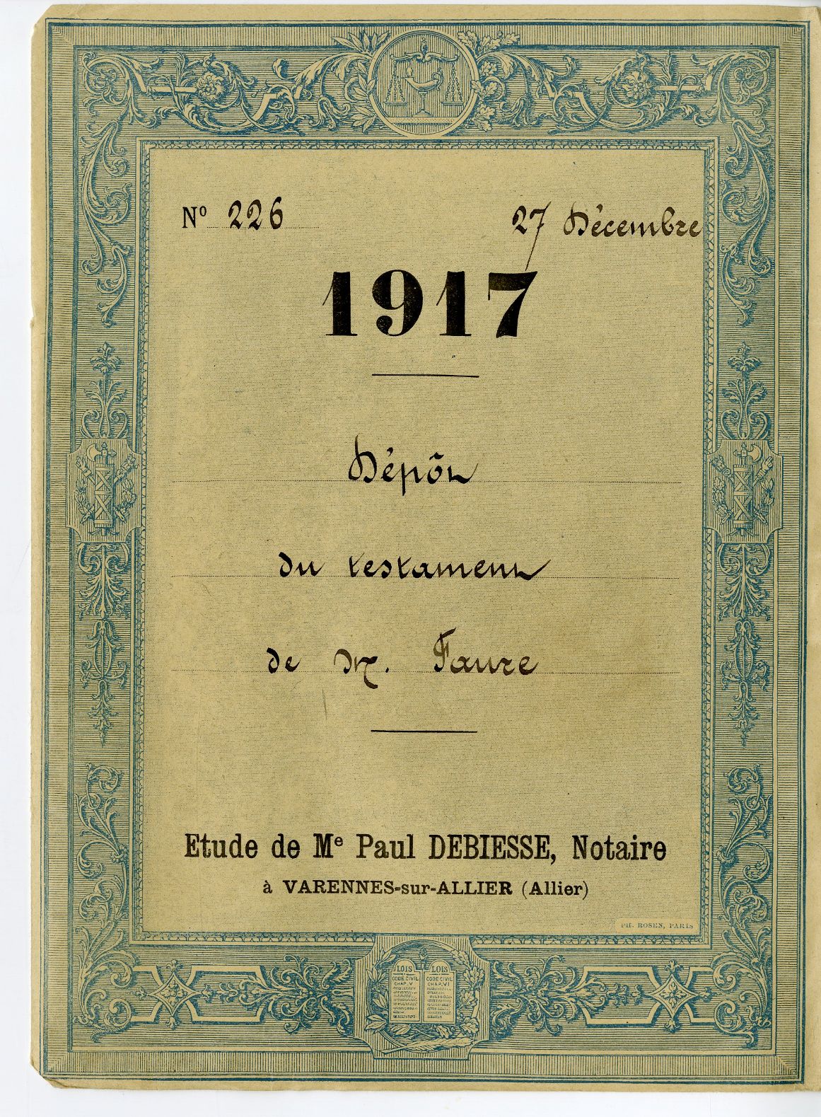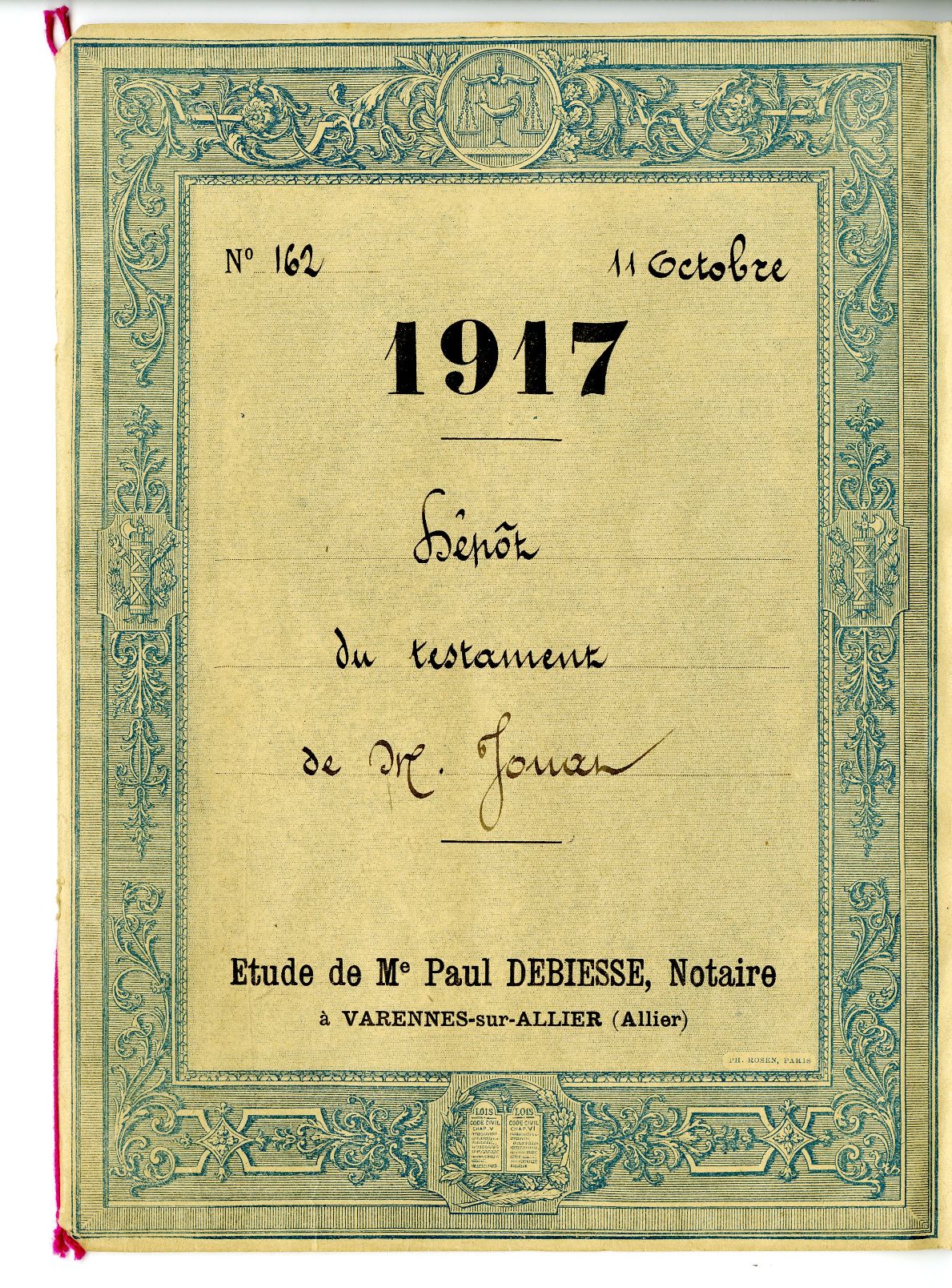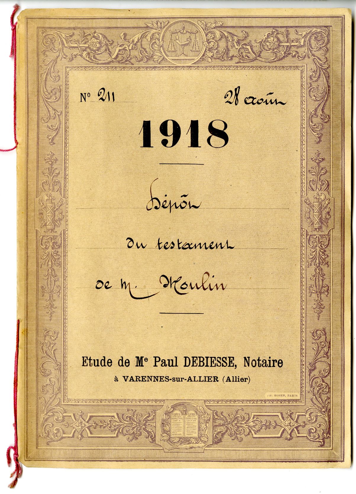 Testament de Louis Mantin léguant sa maison à la ville de Moulins en 1905. Il a alors exprimé ses conditions particulières :