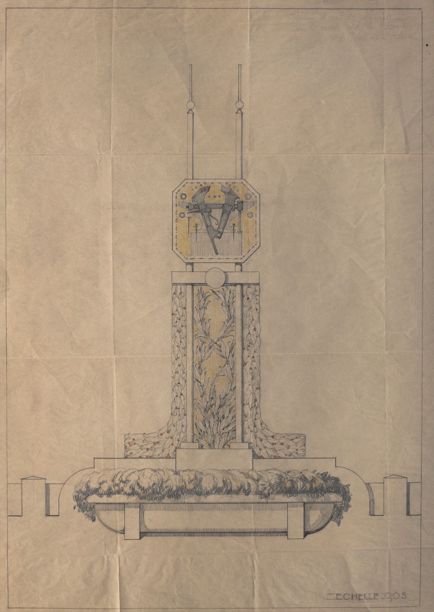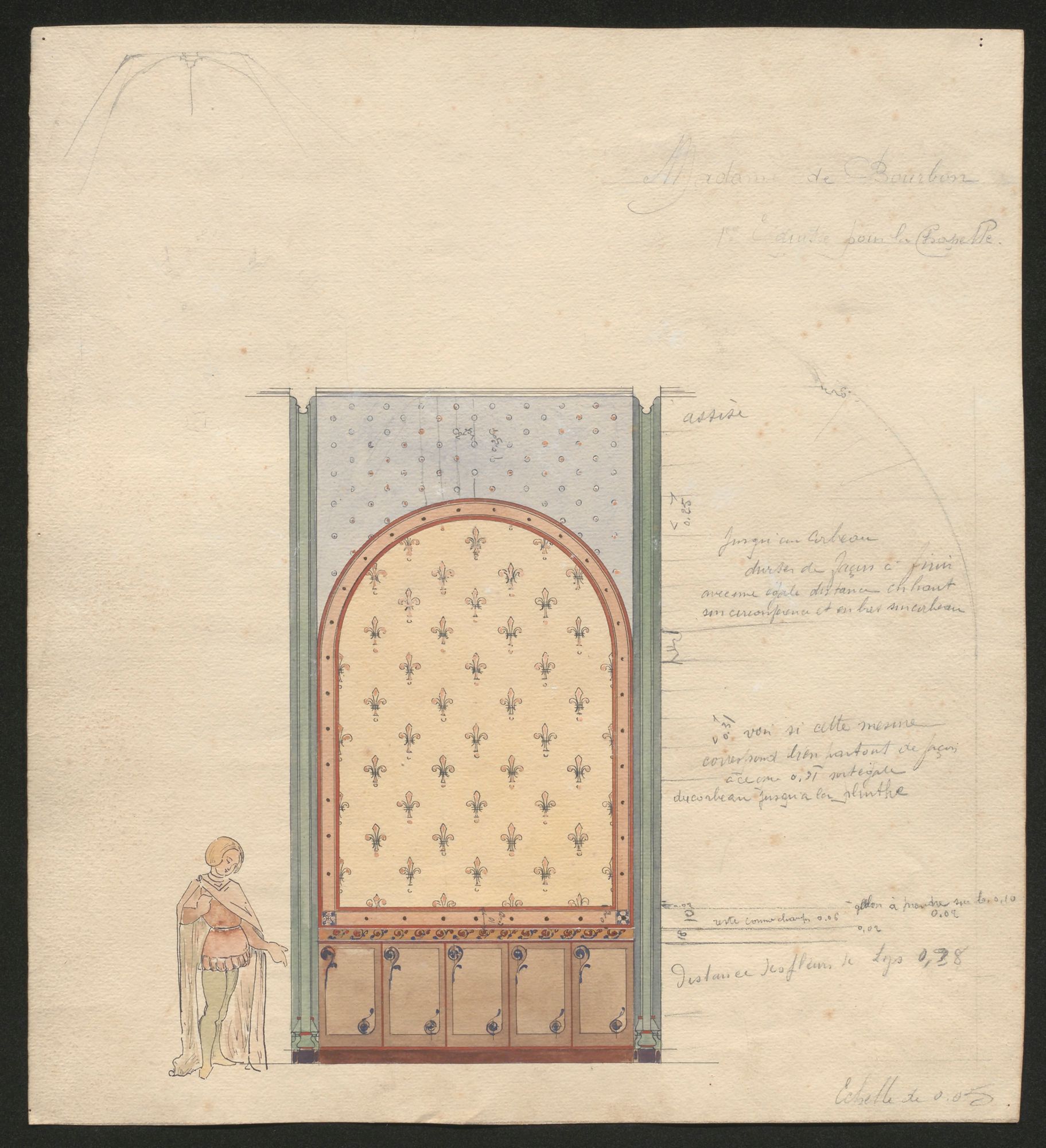 Le décor le plus ancien est daté de 1908. Il s'agit d'une esquisse pour une chapelle pour "Madame de Bourbon".