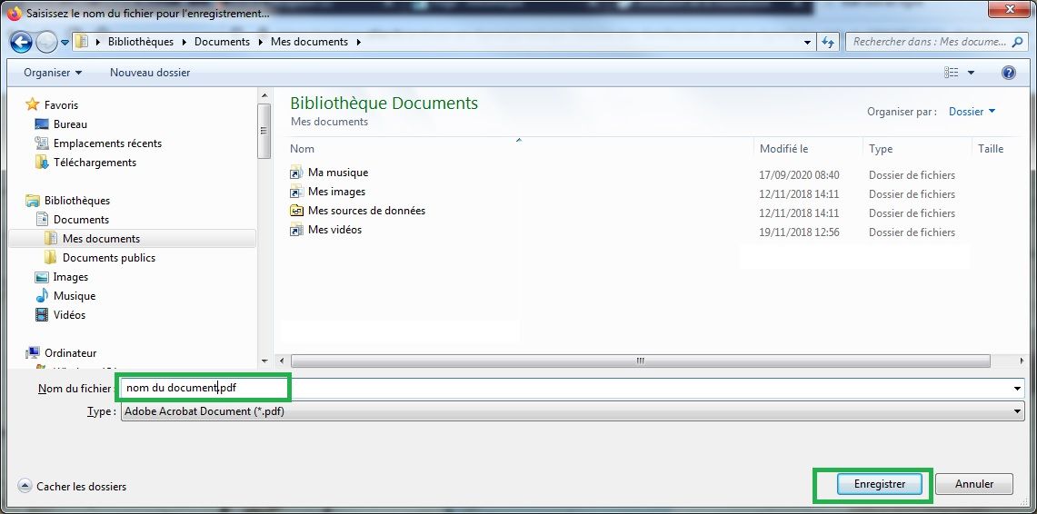 - Une fois le carré de sélection effectué, une fenêtre d'enregistrement apparaît, il suffit de donner un nom à son document et de l'enregistrer. Le fichier enregistré est un format PDF.