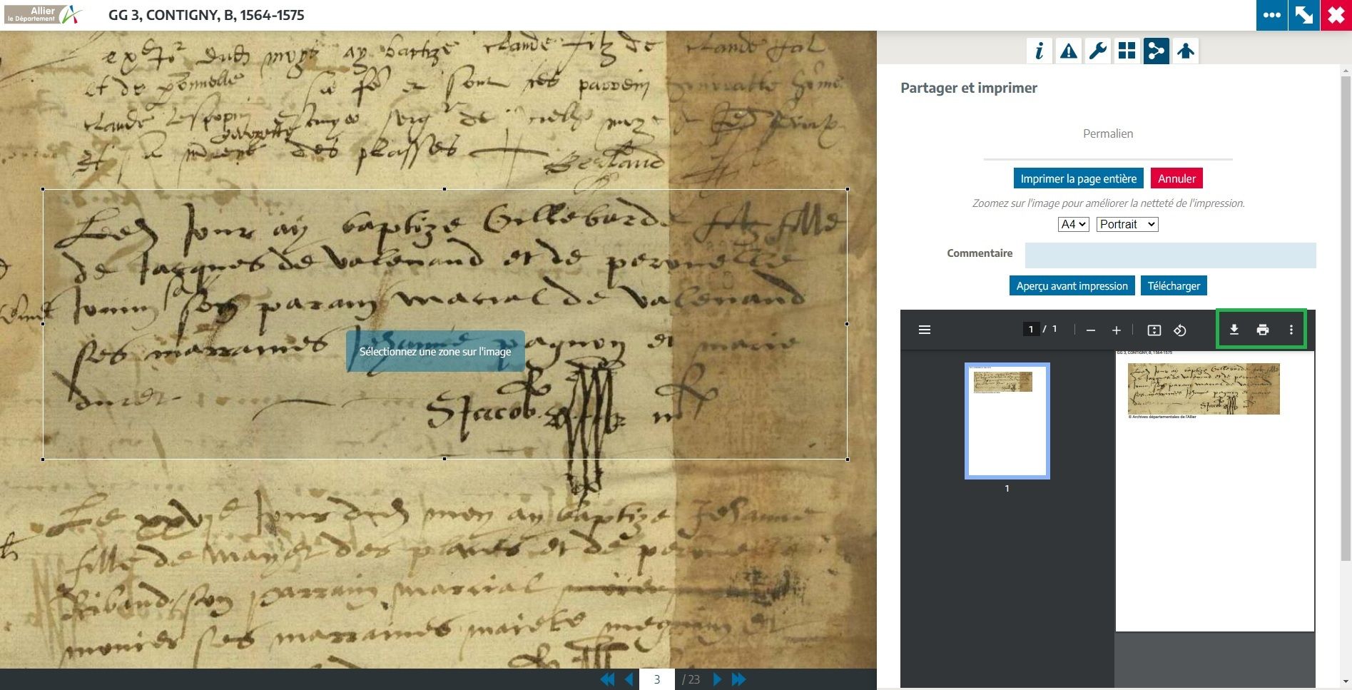 - Une fois le carré de sélection effectué, un aperçu avant impression apparaît dans la partie droite de l'écran.