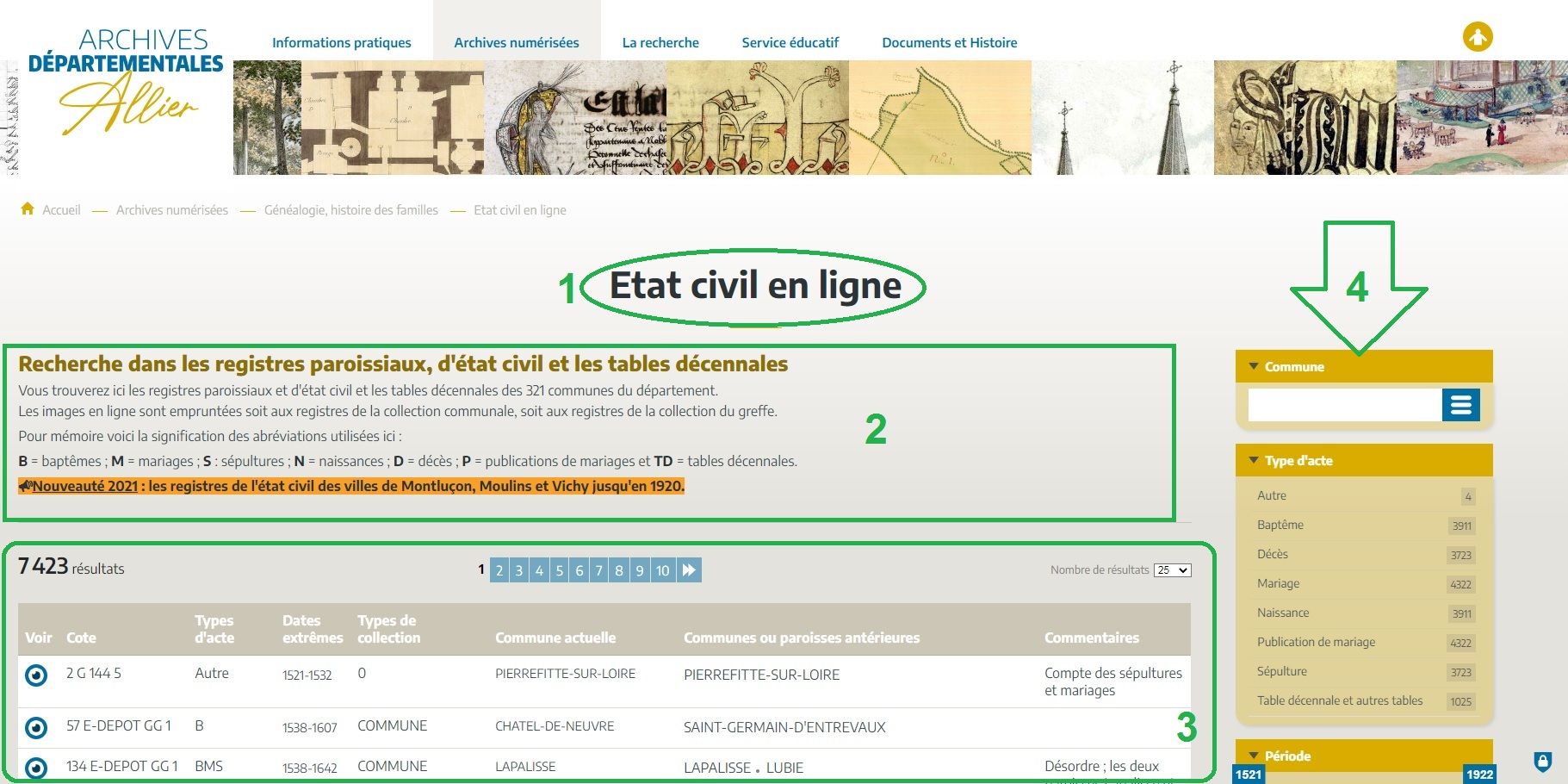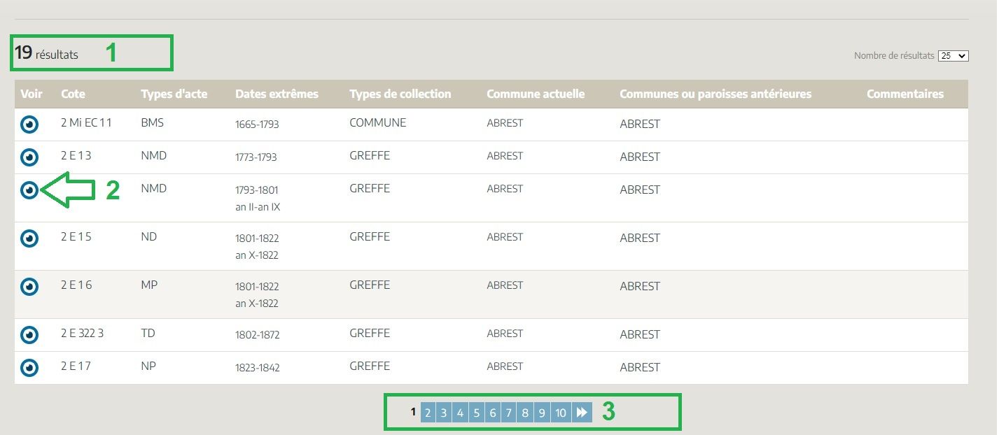 - Tableau des résultats (par défaut tous les résultats s'affichent)
