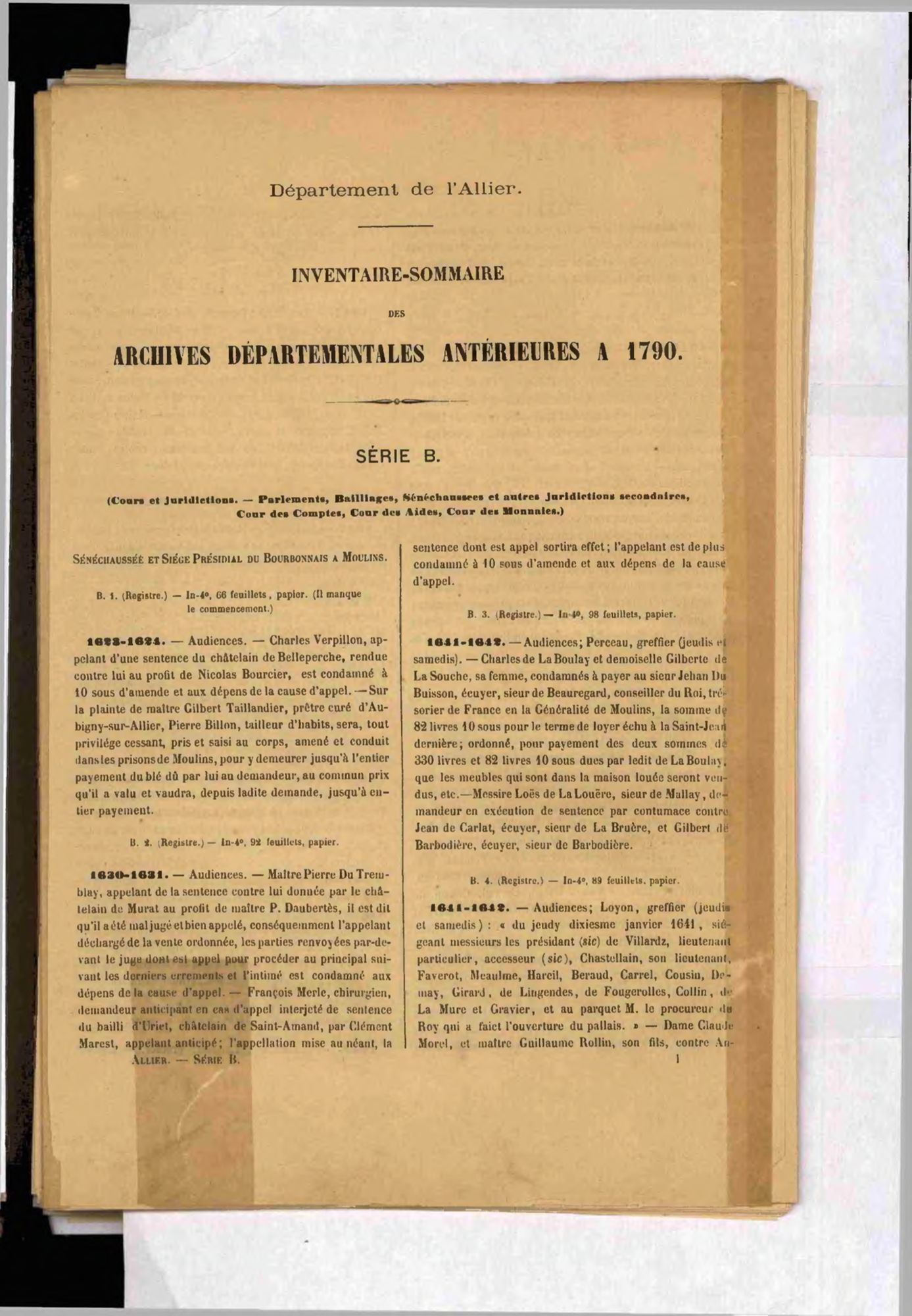 La série B est en cours de classement, est ici présenté l'inventaire imprimé couvrant les cotes B 1 à 880.