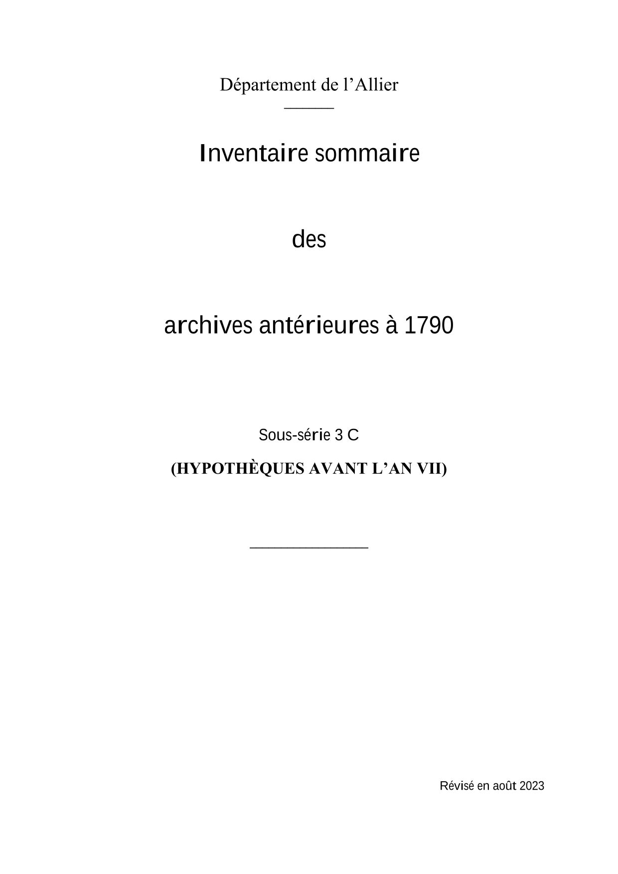 Sous-série 3 C : hypothèques avant l'an VII