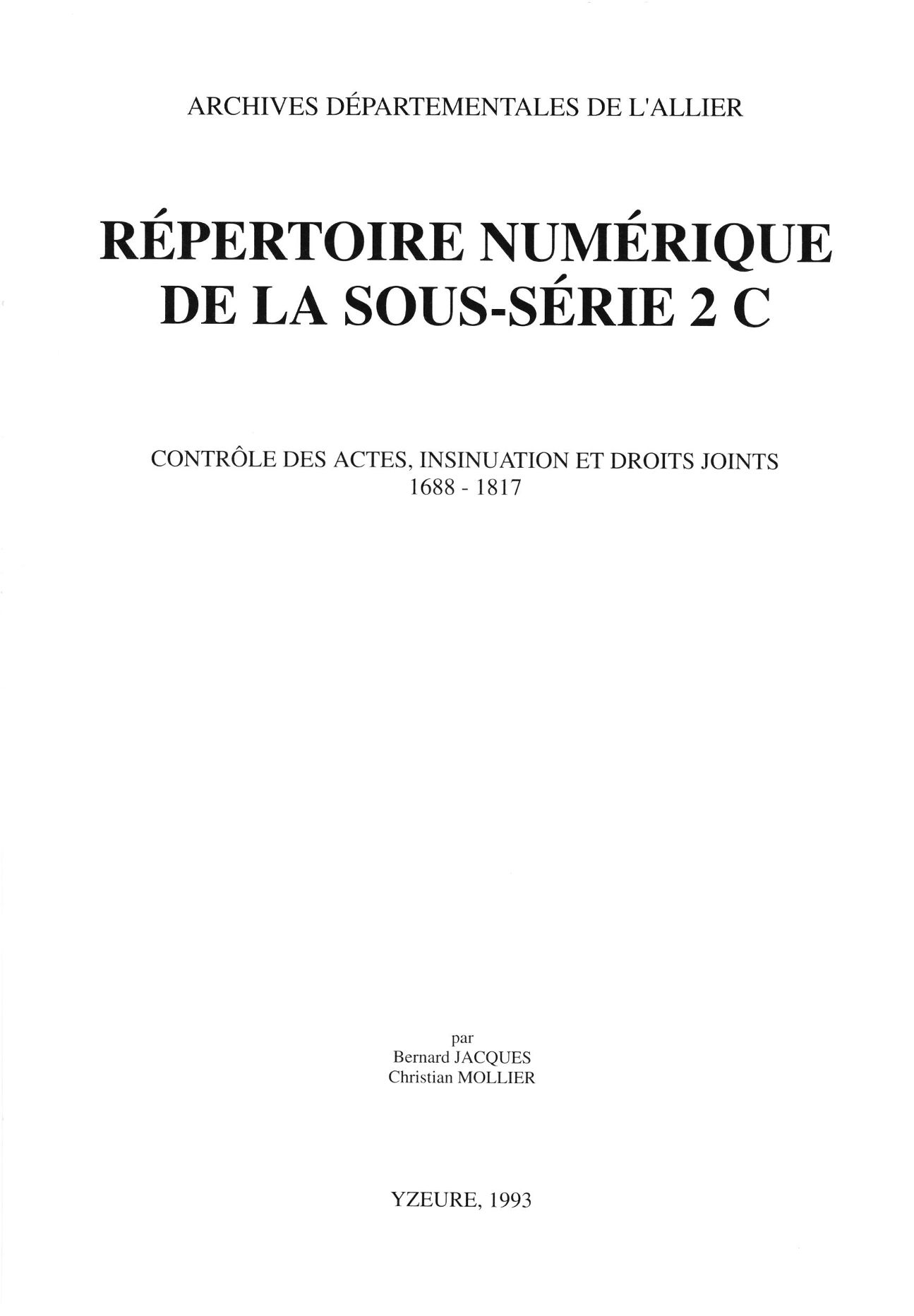Sous-série 2 C : contrôle des actes, insinuation et droits joints, 1688-1817