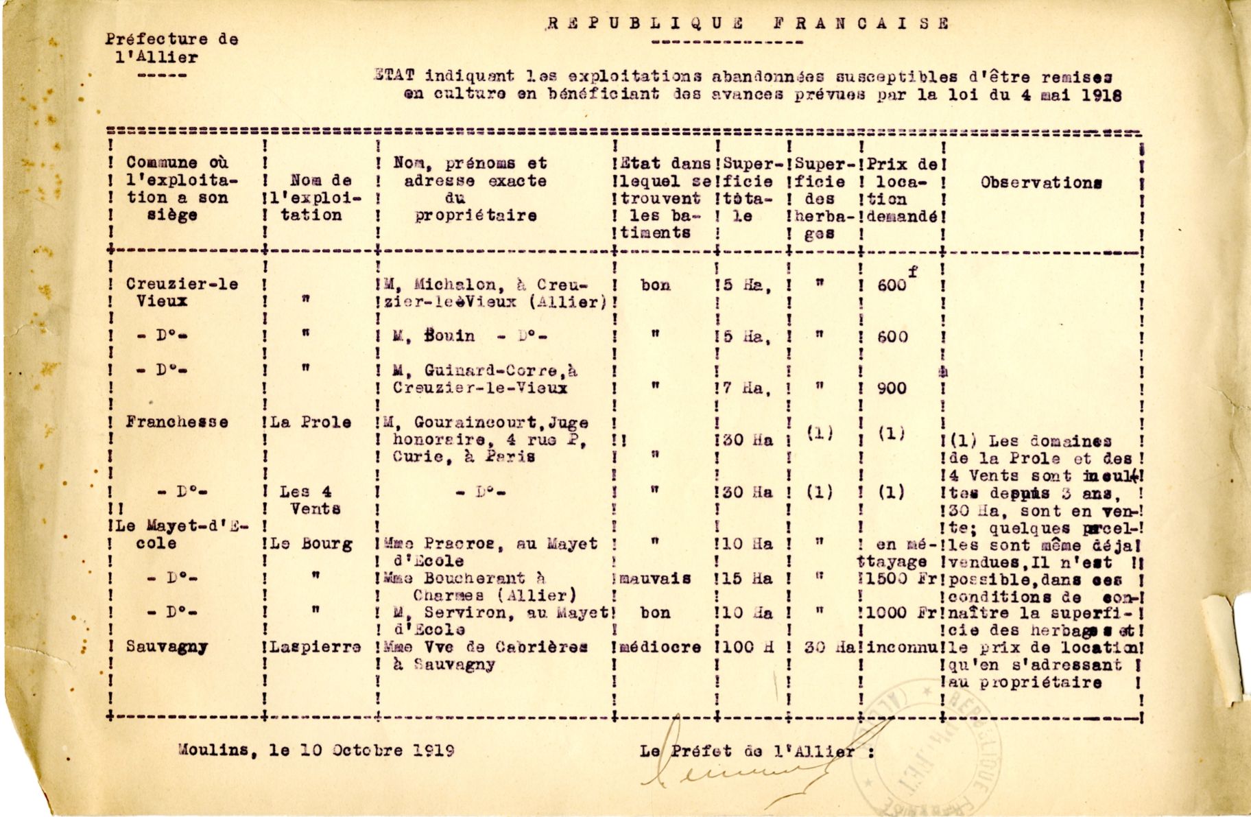 Les maires doivent aussi indiquer au préfet les exploitations de leur commune abandonnées du fait de la guerre et susceptibles d’être remises en culture.