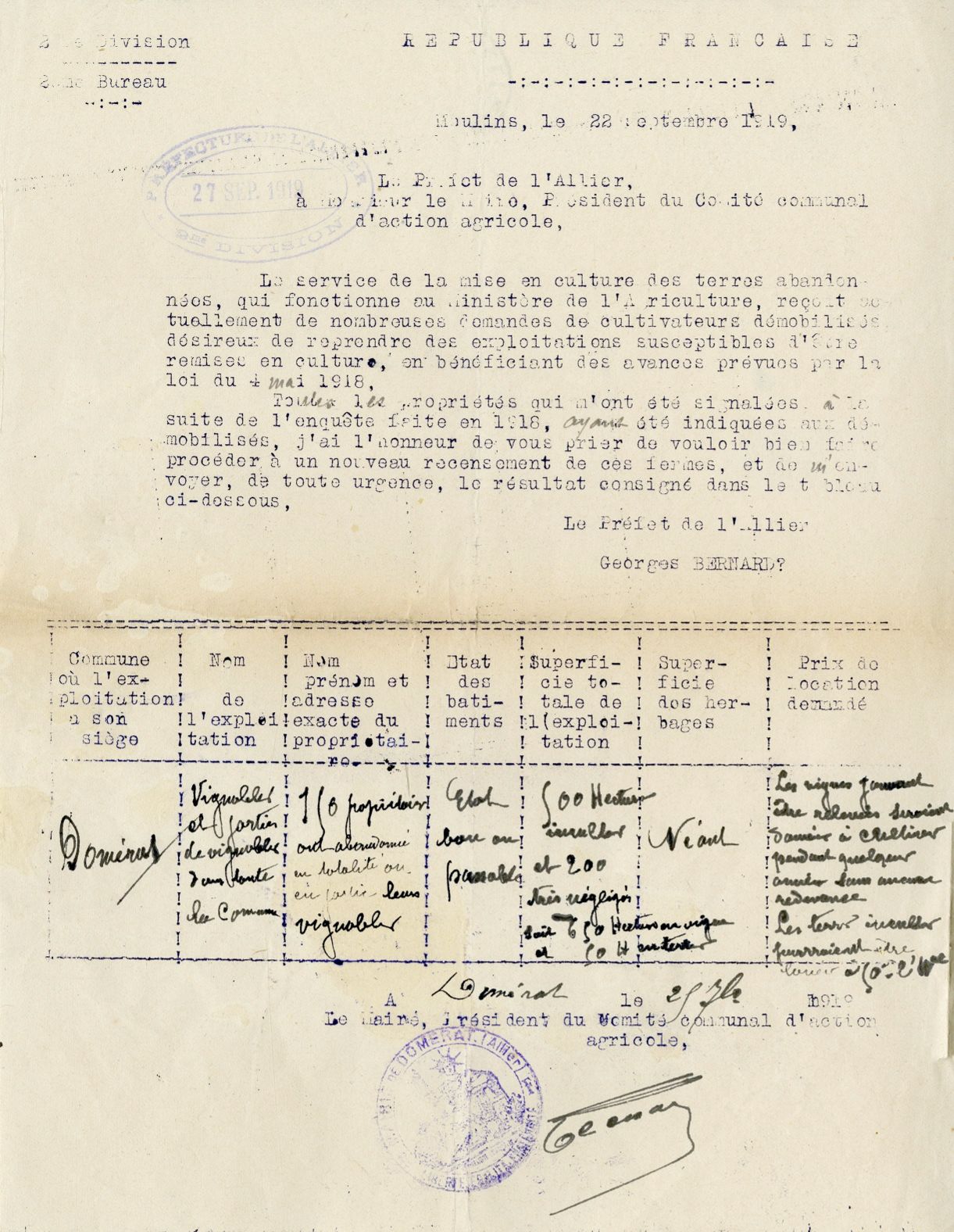 En novembre 1919, la préfecture de l’Allier fournit au ministre de l’Agriculture un état chiffré des vides causés par la guerre parmi les cultivateurs bourbonnais, commune par commune.