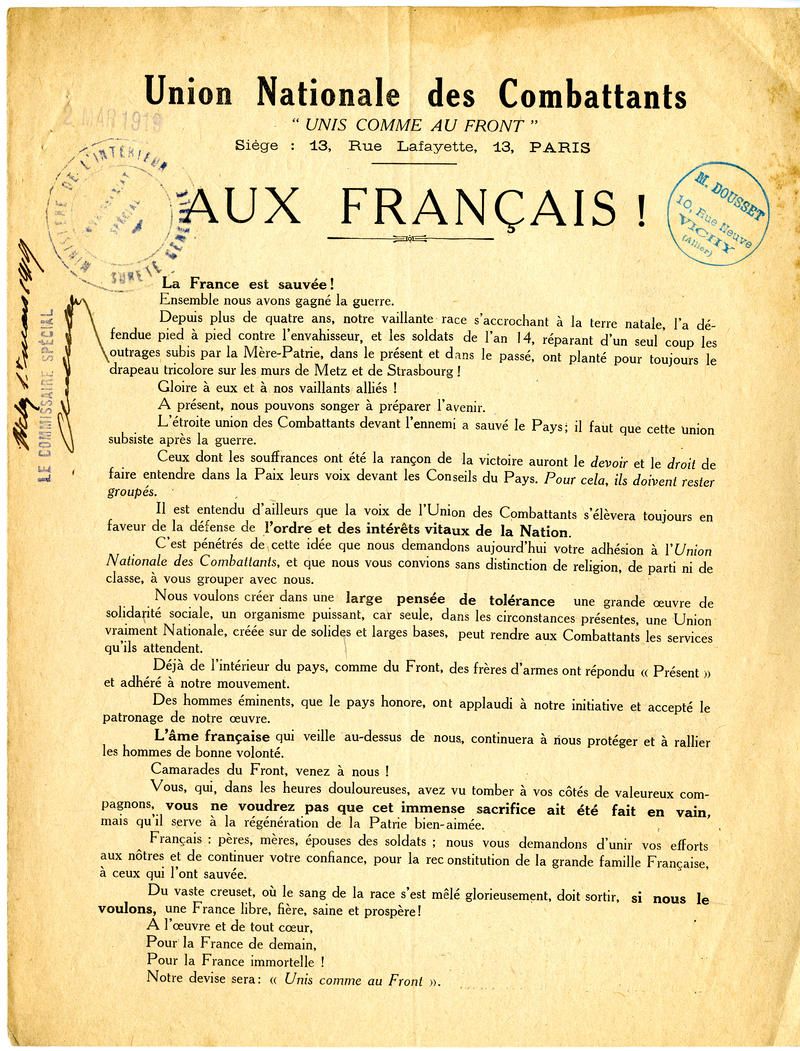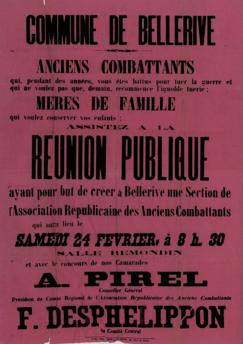 Affiches et tracts d'associations d'anciens combattants bourbonnaises