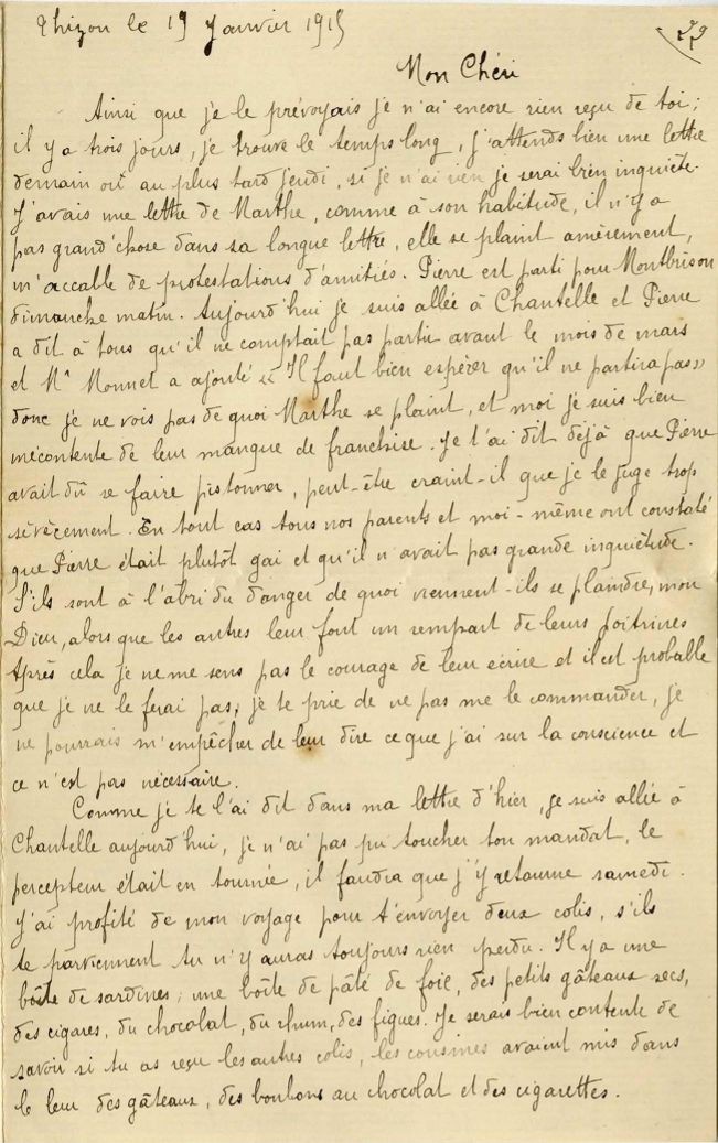 Sa correspondance représente un volume exceptionnel de plusieurs centaines de lettres et couvre toute la durée du conflit (voir correspondance) . Elle s’accompagne d’une série de photographies prises dans la région du front (voir photos).