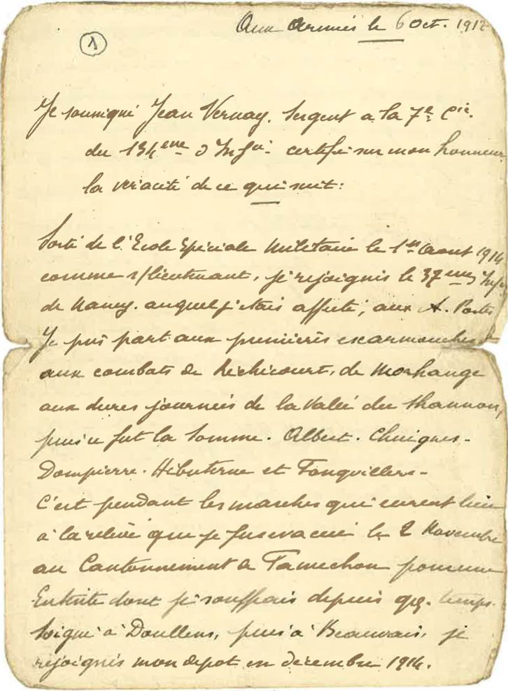 Jeanne Vernay est née à Chantelle (Allier, 03) le 13 octobre 1872. En 1983, elle épouse Romain Vernay. De cette union nait Jean Vernay, le 7 juillet 1894. La famille Vernay vit entre Versailles et Alger. En 1914, Jeanne rentre en France et séjourne à Chantelle (où réside sa famille).
